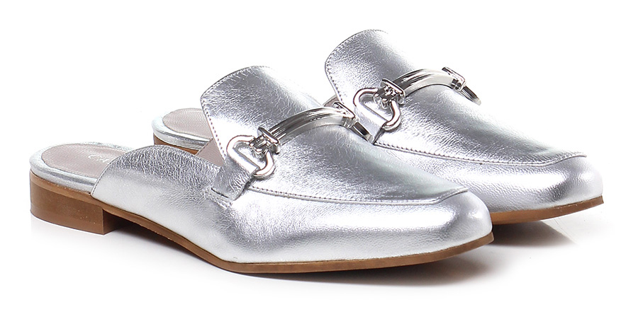Scarpa bassa in pelle laminata effetto vintage con applicazione frontale effetto metallico e suola in gomma. Tacco 30.