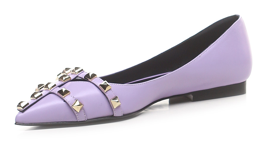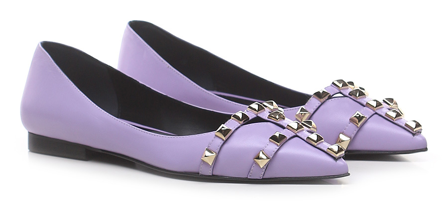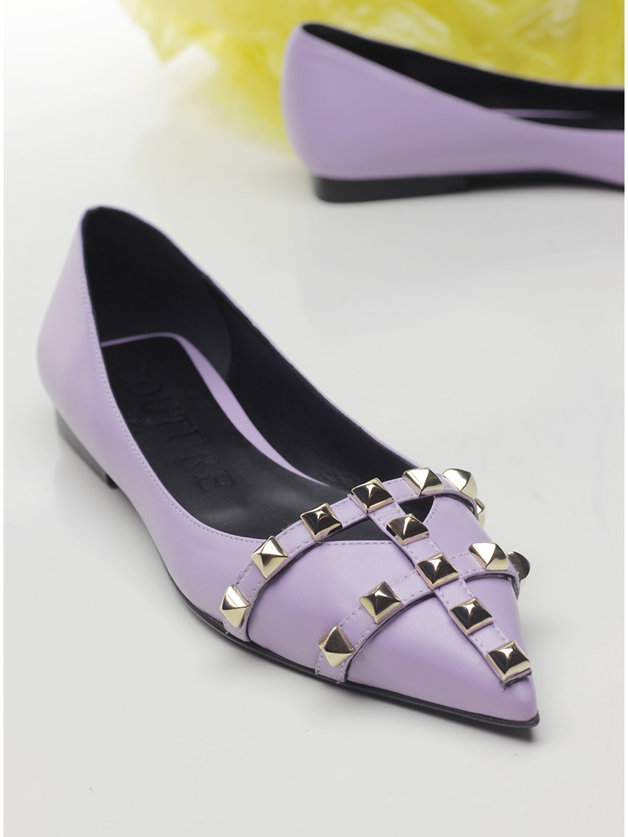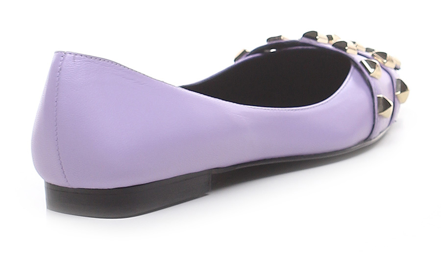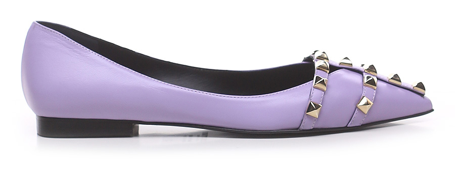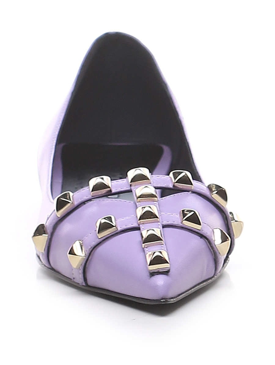 Scarpa in pelle con borchie gold frontali. Suola in cuoio e gomma. Altezza tacco 15mm.