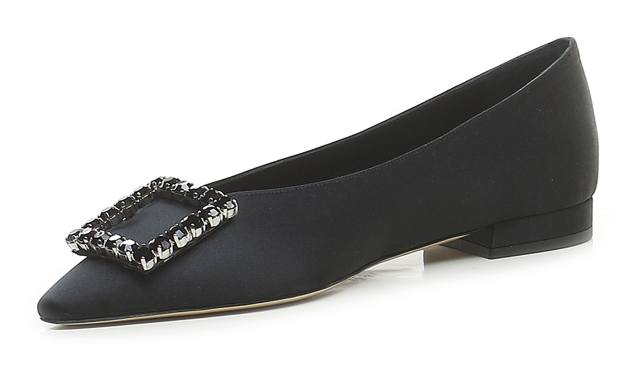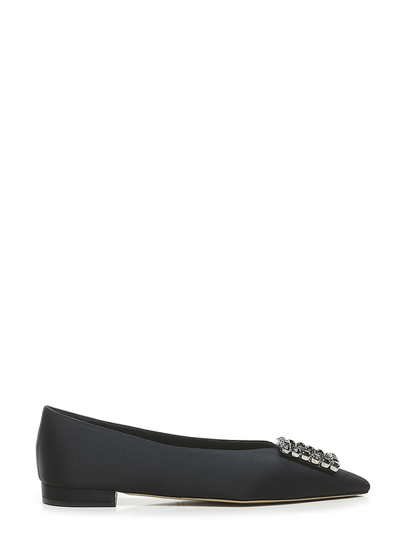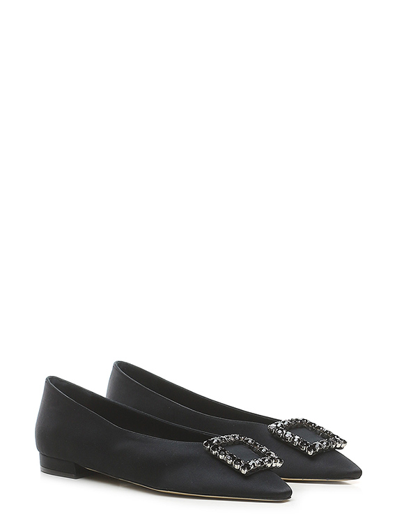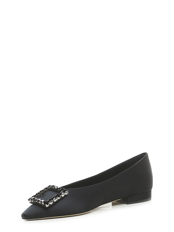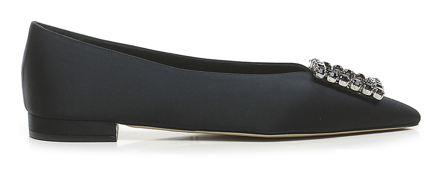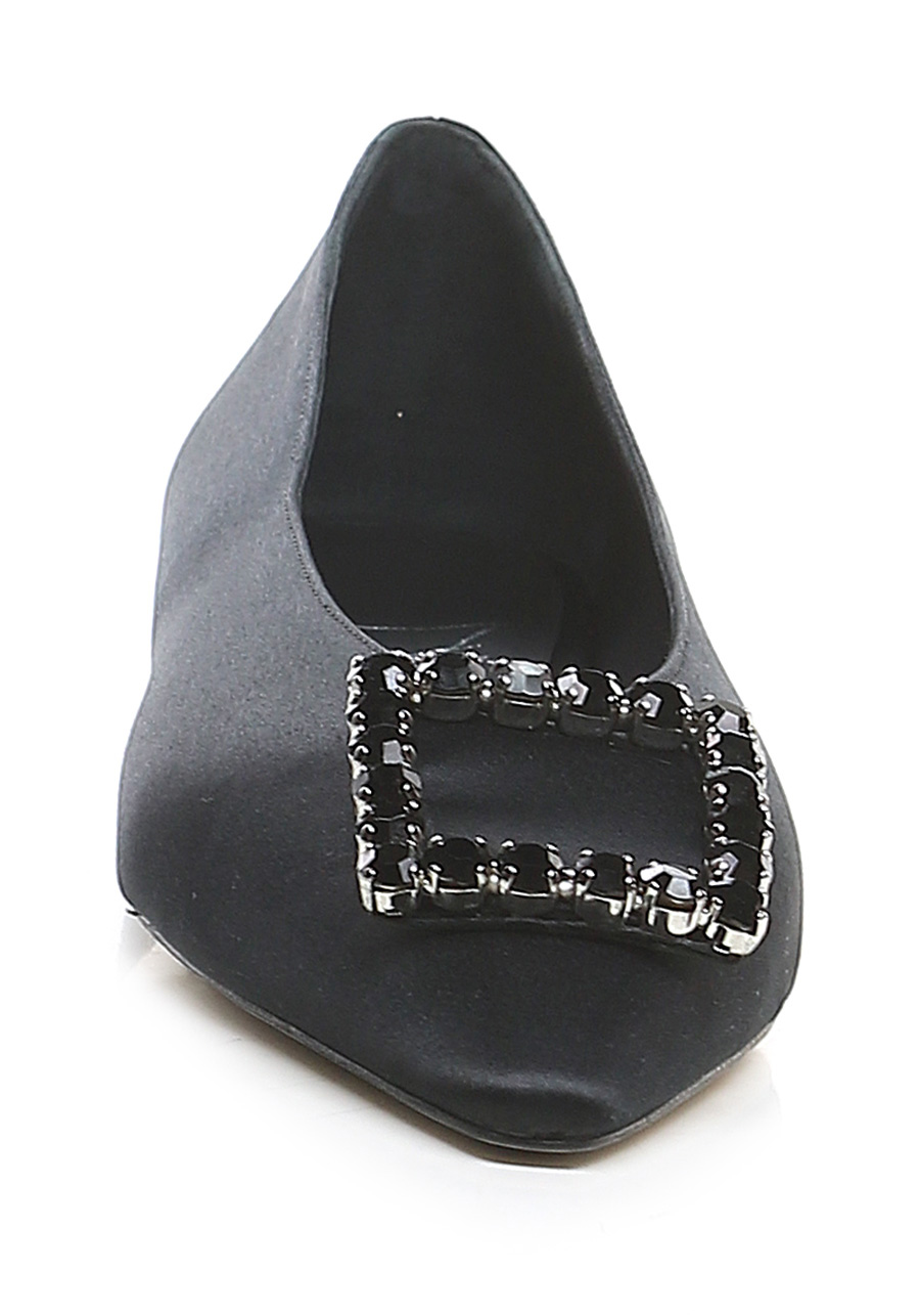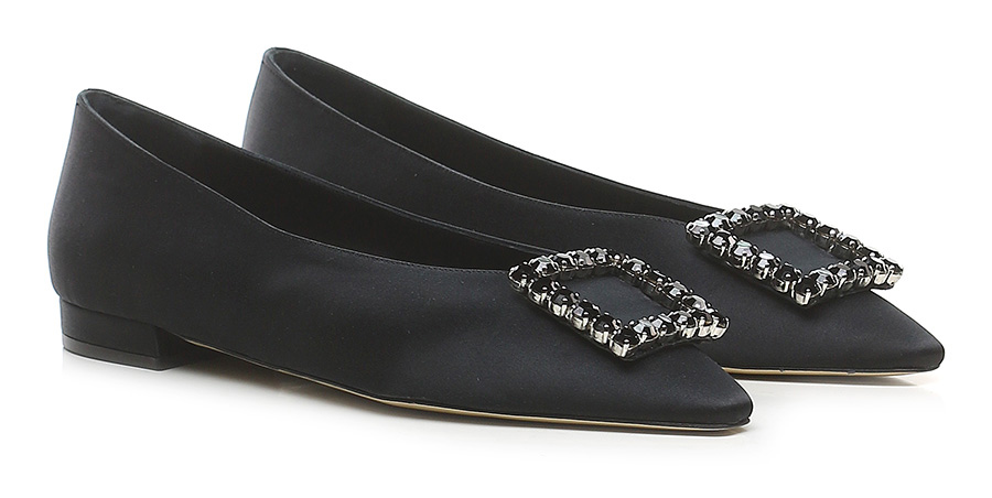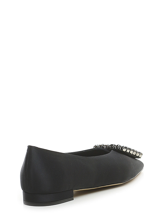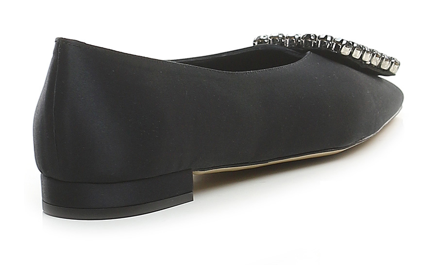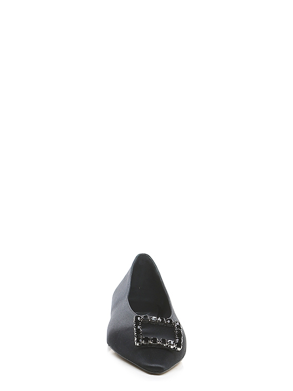 Scarpa in raso con accessorio frontale con pietre. Suola in cuoio e gomma. Altezza tacco 15mm.