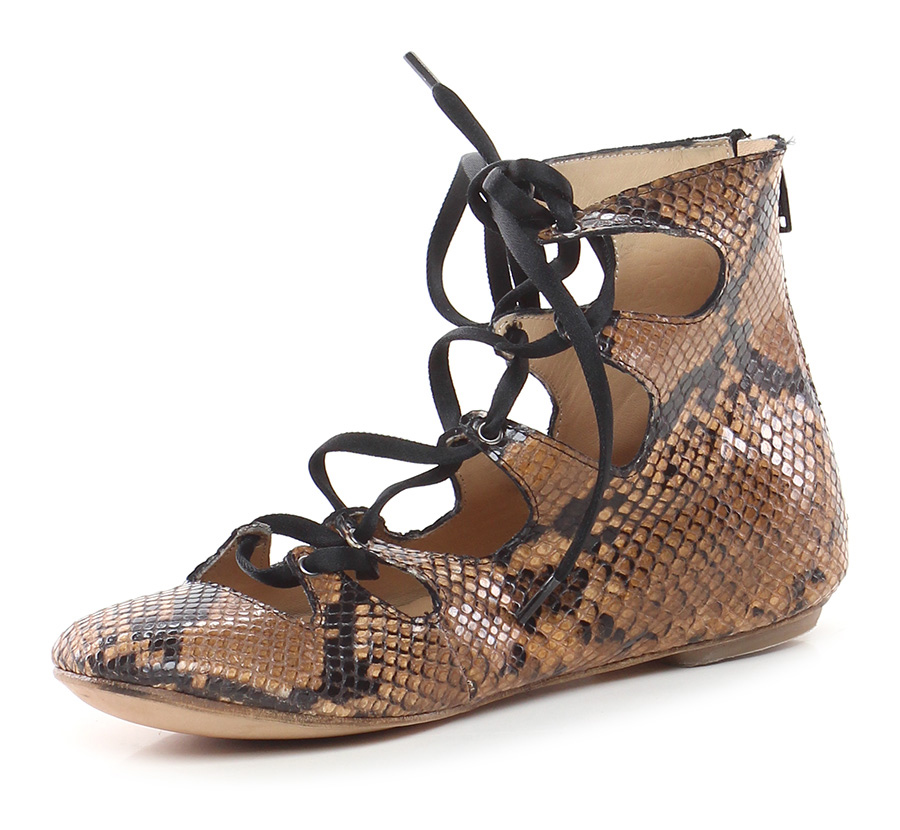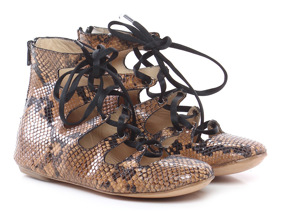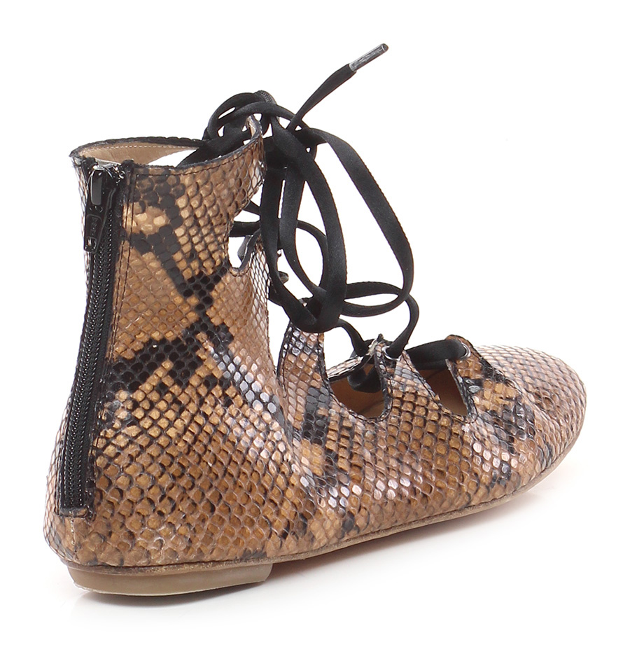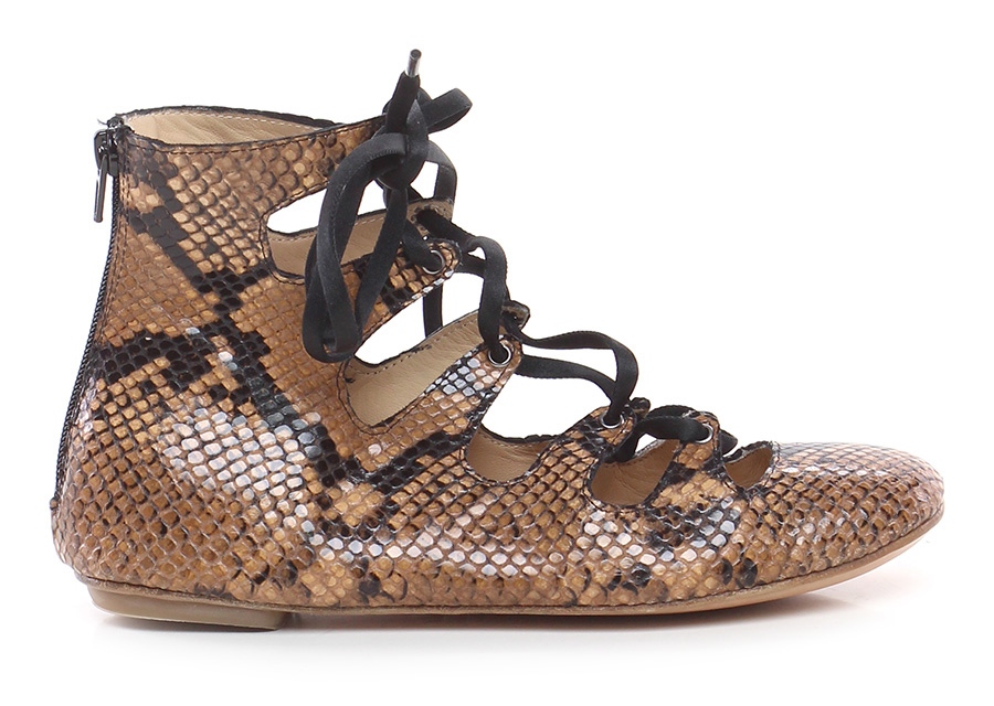 Scarpa bassa in pelle stampa pitone zip su retro con allacciatura frontale, suola in cuoio. Tacco 15.