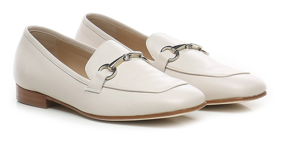 Scarpa in pelle con morsetto frontale e suola in cuoio e gomma. Altezza tacco 15mm.