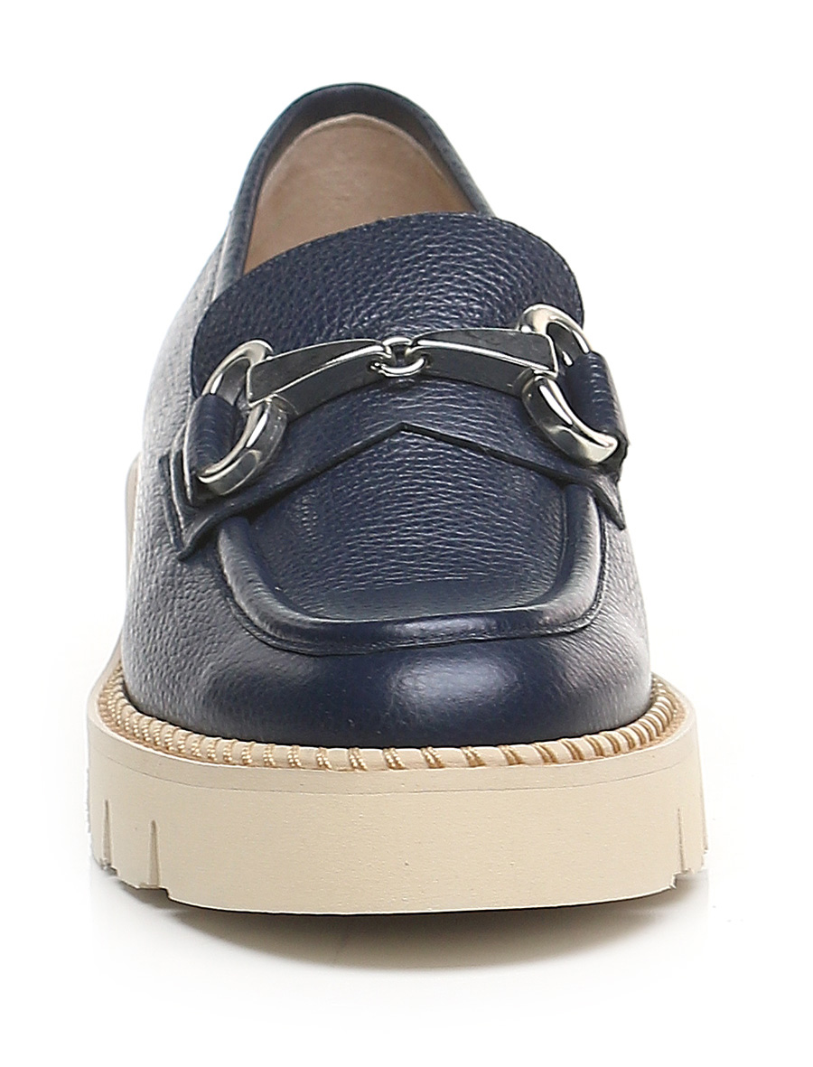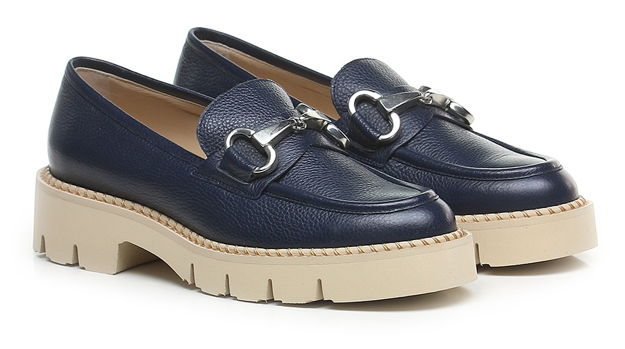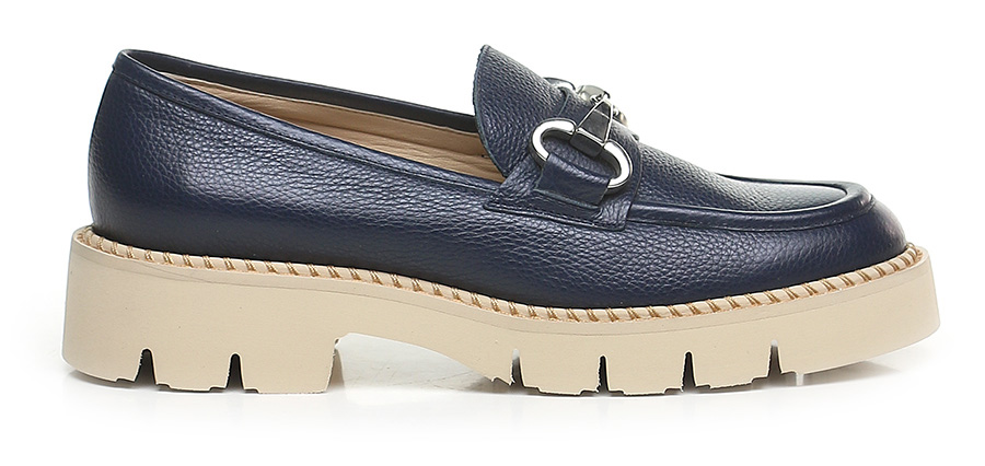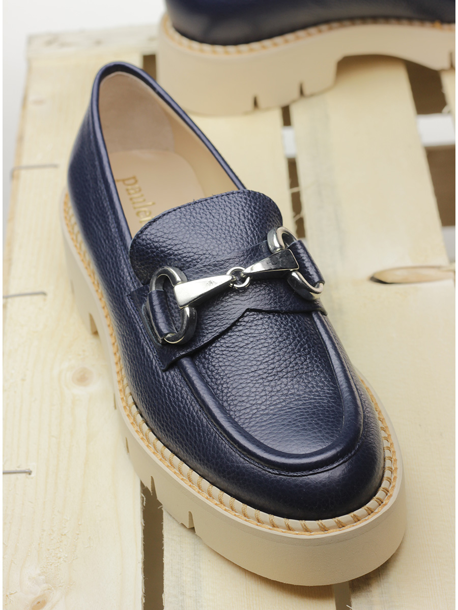 Scarpa in pelle con morsetto frontale e suola in gomma. Altezza tacco 40mm, platform 25mm con battuta 15mm.