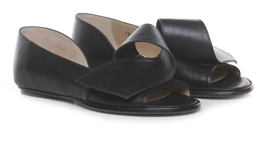 Scarpa bassa open toe in pelle, suola in cuoio. Tacco 10.