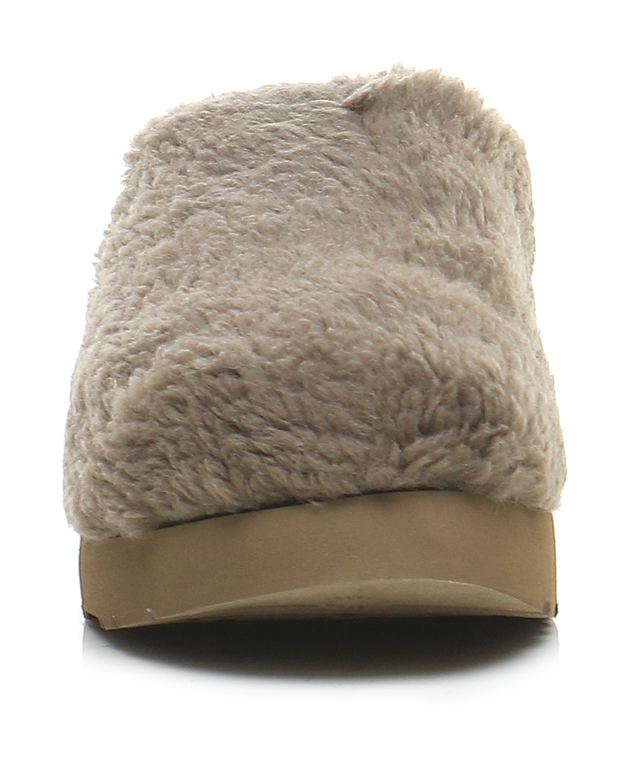 Scarpa in montone foderata in fake fur con parte della suola in pelle .Suola in gomma. Altezza suola 45mm.