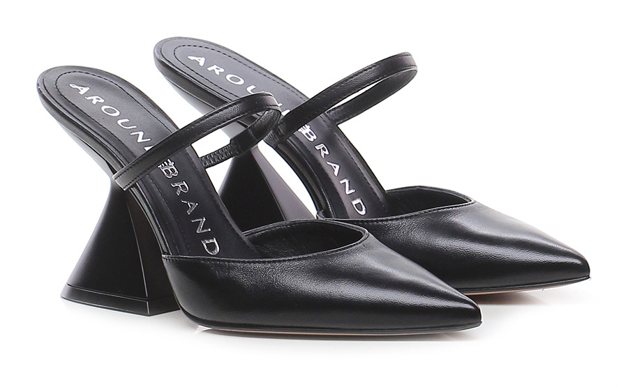 Scarpa con tacco in pelle con listino al collo del piede con inserto elasticizzato, suola in cuoio. Tacco 100, scolpito svasato rivestito in pelle.