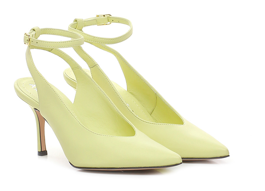 Scarpe con tacco in pelle con cinturino alla caviglia, suola in gomma. Tacco 85.