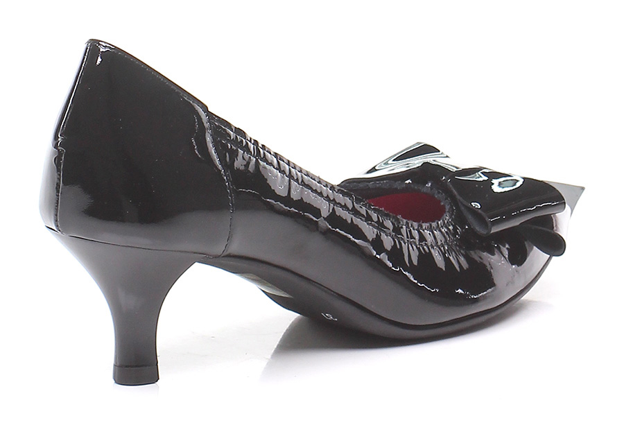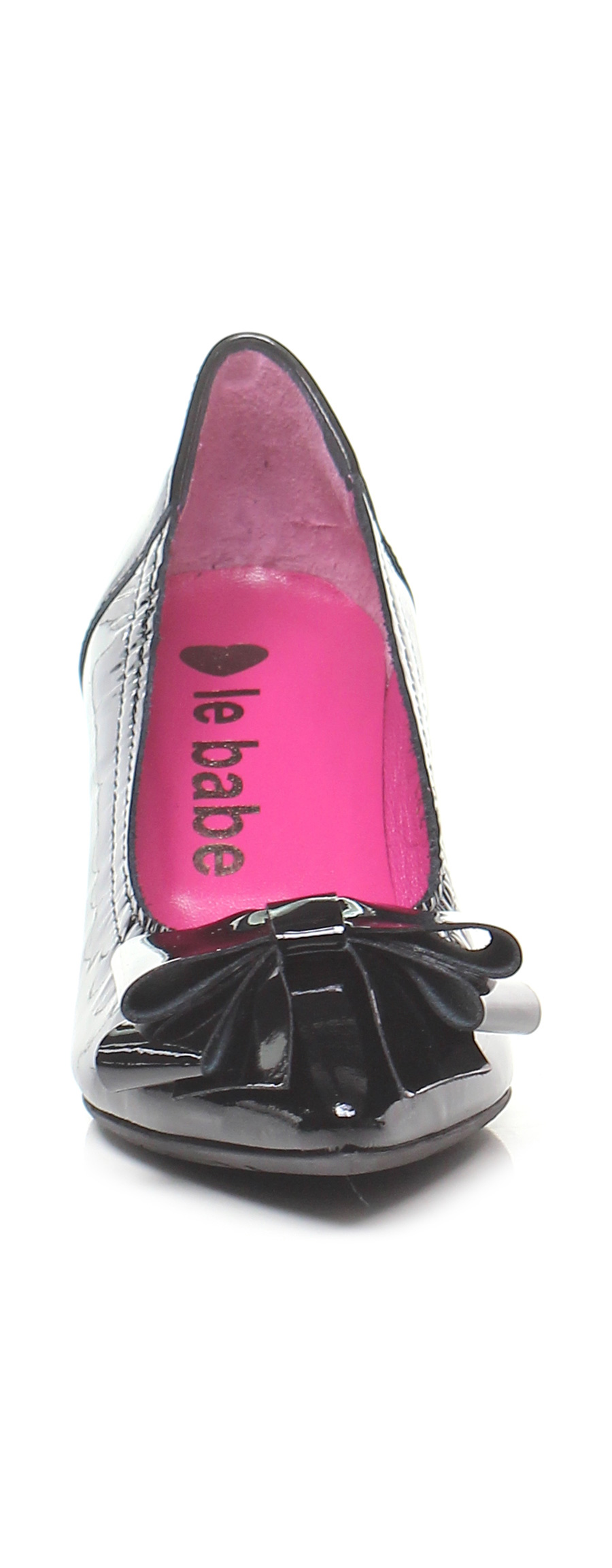 Scarpa con tacco in vernice con fiocco in vernice frontale e suola in gomma. Tacco 60.