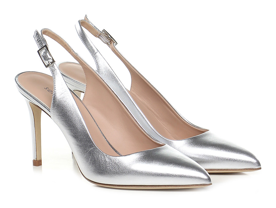 Scarpa con tacco in pelle laminata, suola in cuoio. Tacco 95.