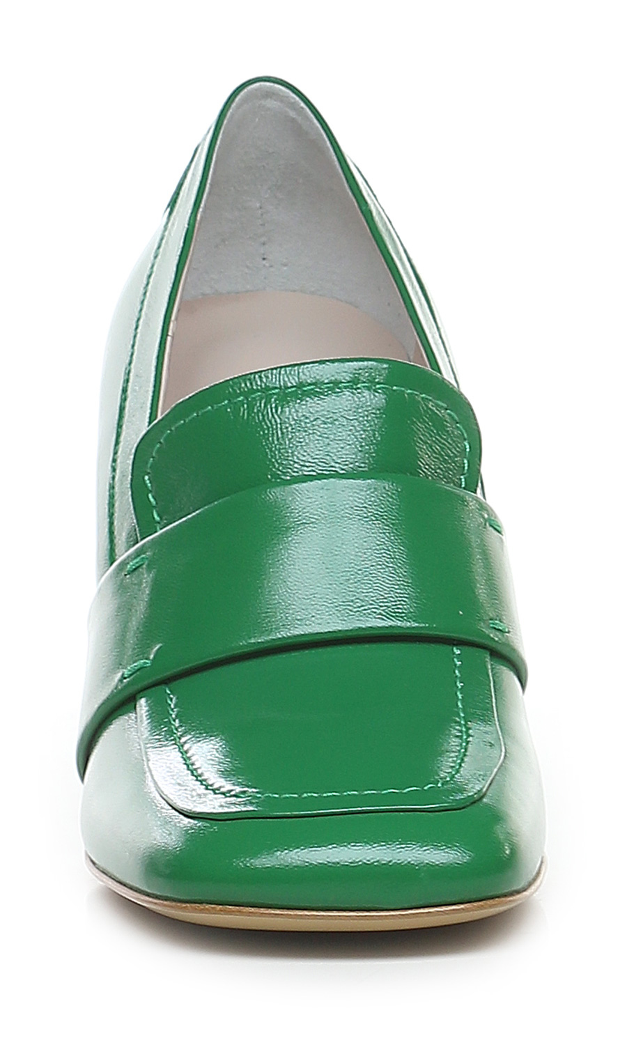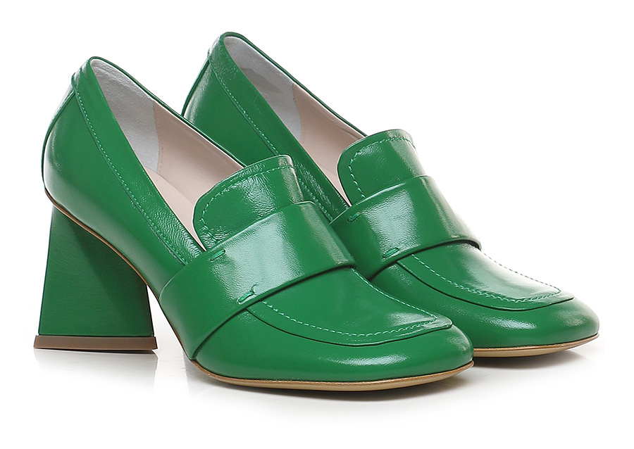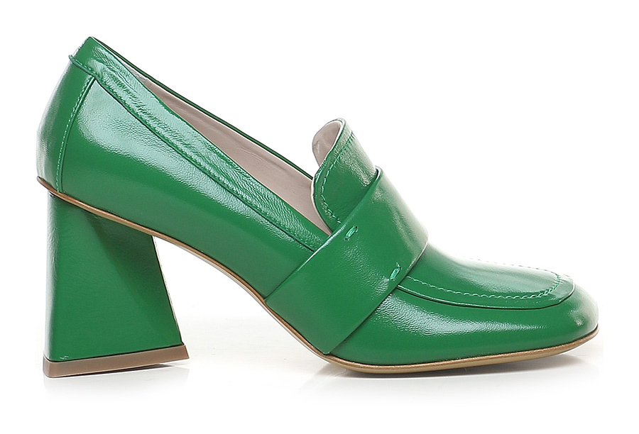 Scarpa in pelle lucida con suola in cuoio e gomma. Altezza tacco 80mm. Tacco foderato in pelle.