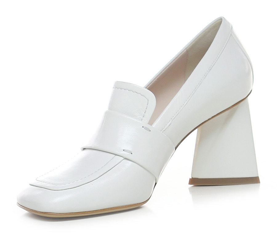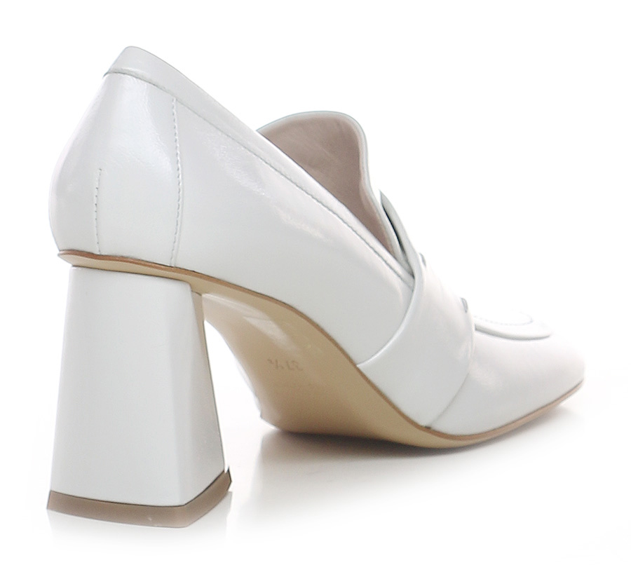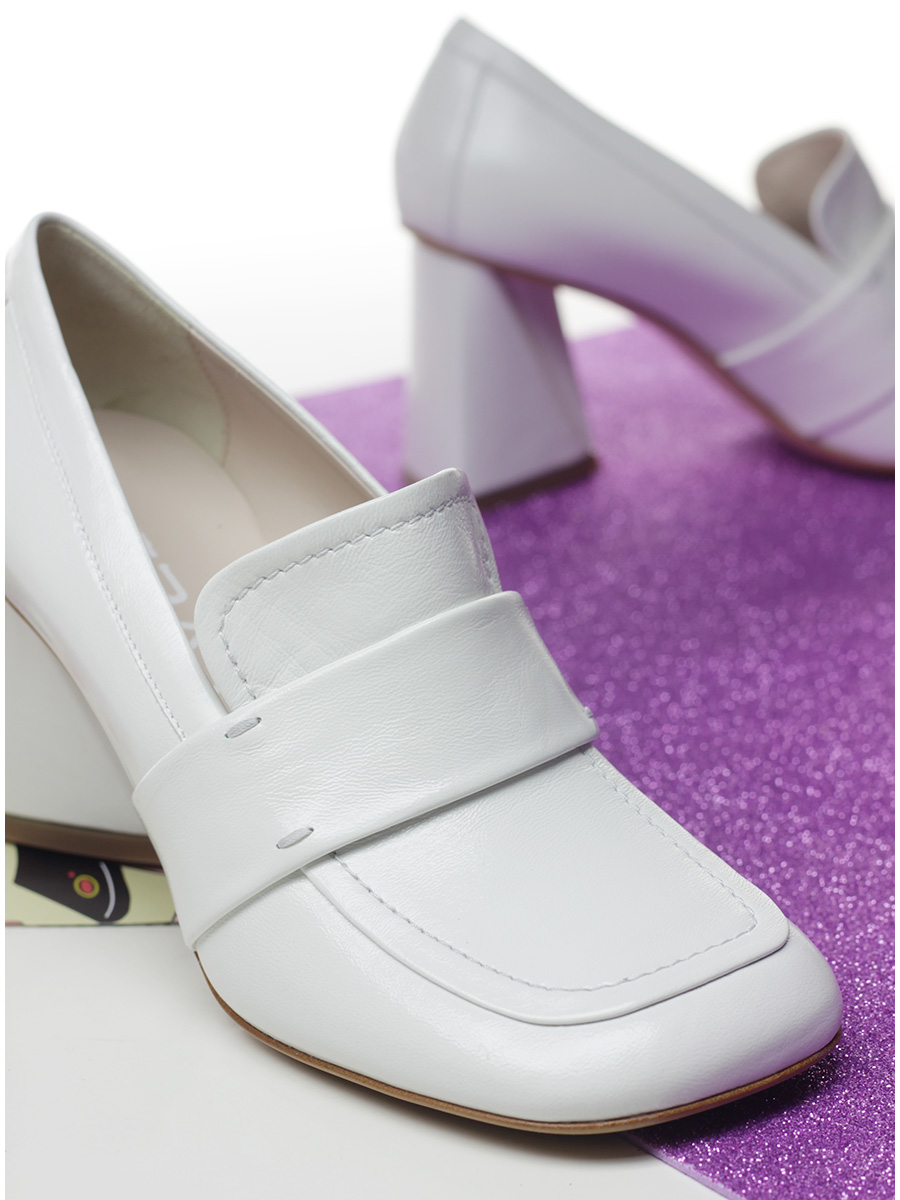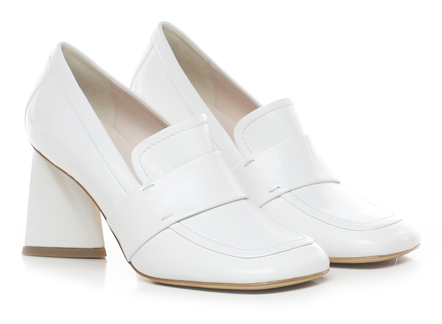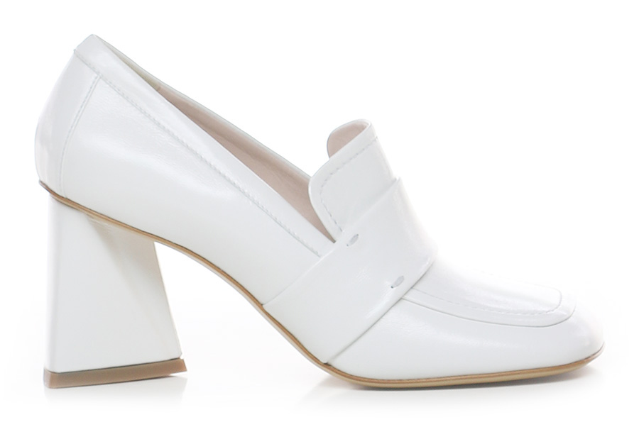 Scarpa in pelle lucida con suola in cuoio e gomma. Altezza tacco 80mm. Tacco foderato in pelle.