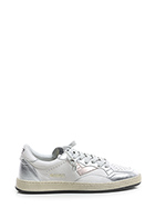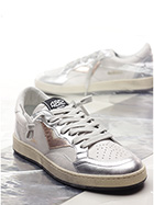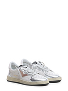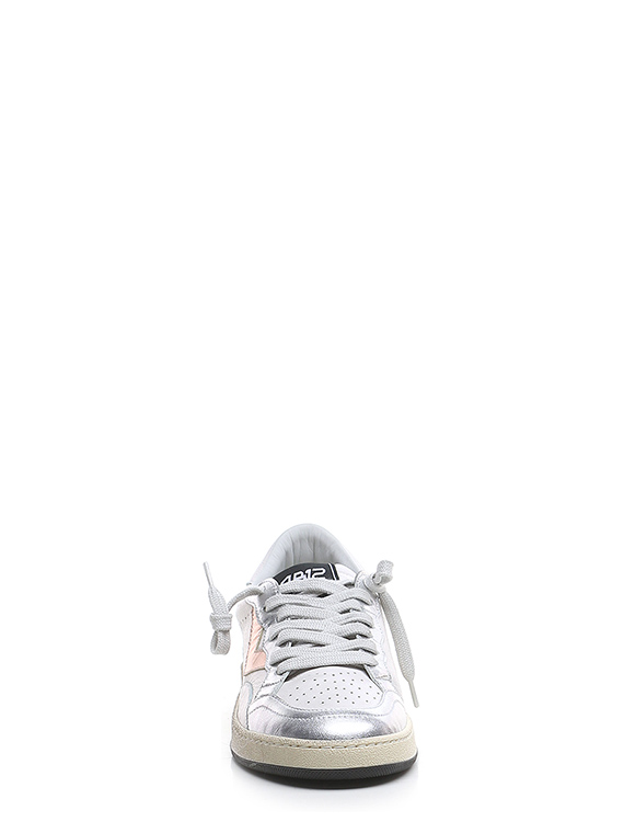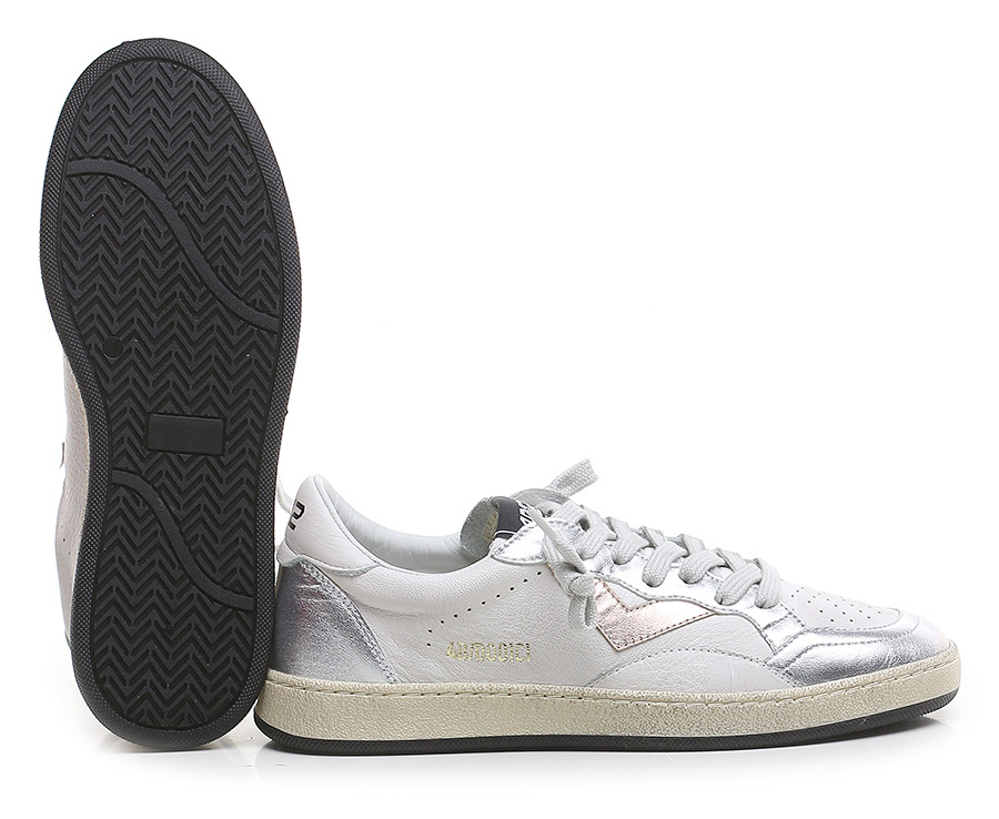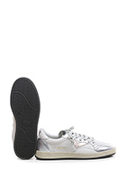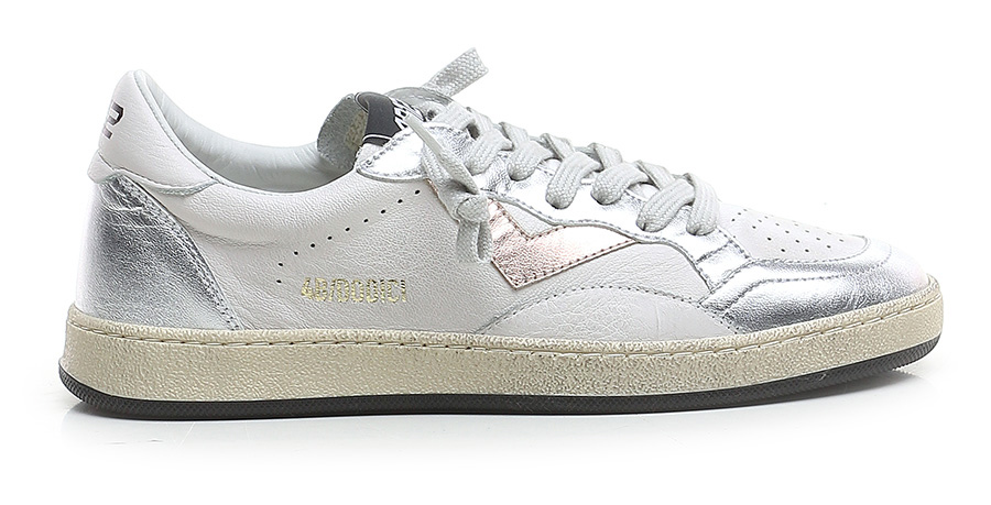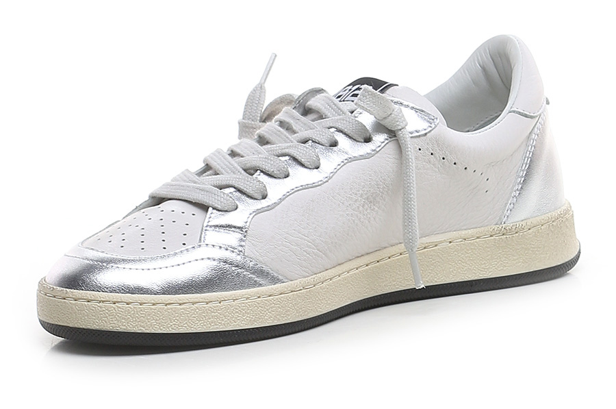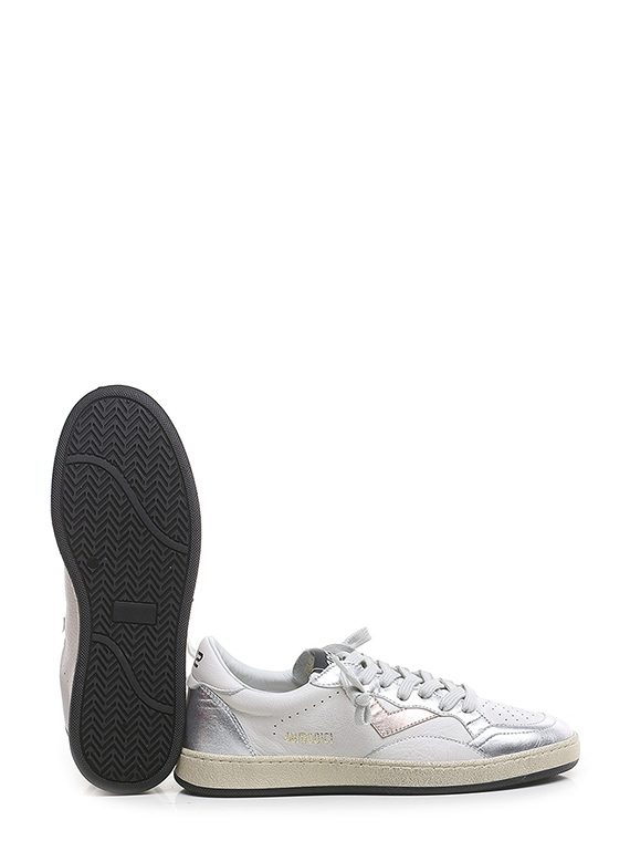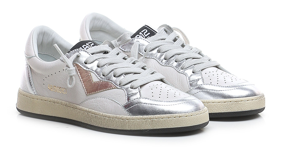 Sneaker in pelle effetto vintage e pelle laminata con suola in gomma. Altezza tacco 30mm, plattform 20mm con battuta di 10mm.