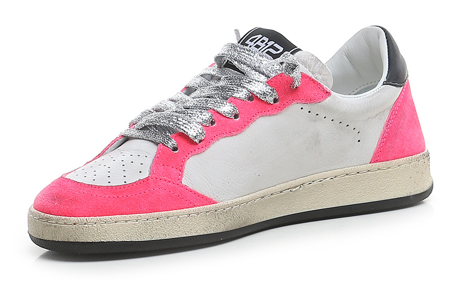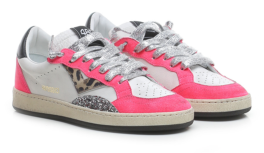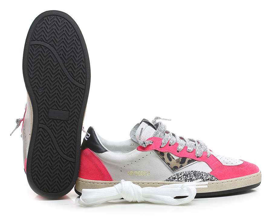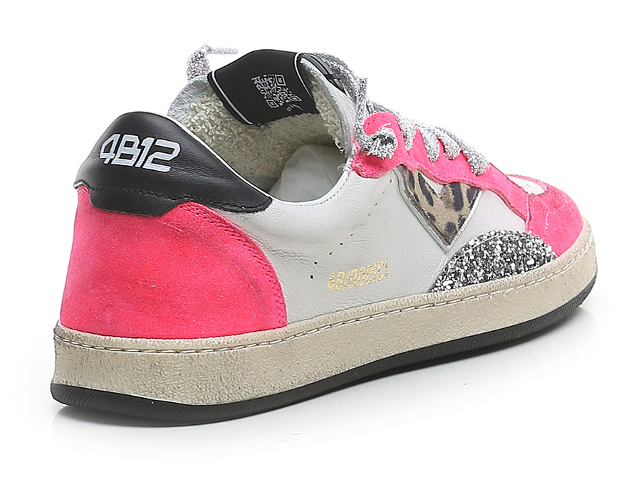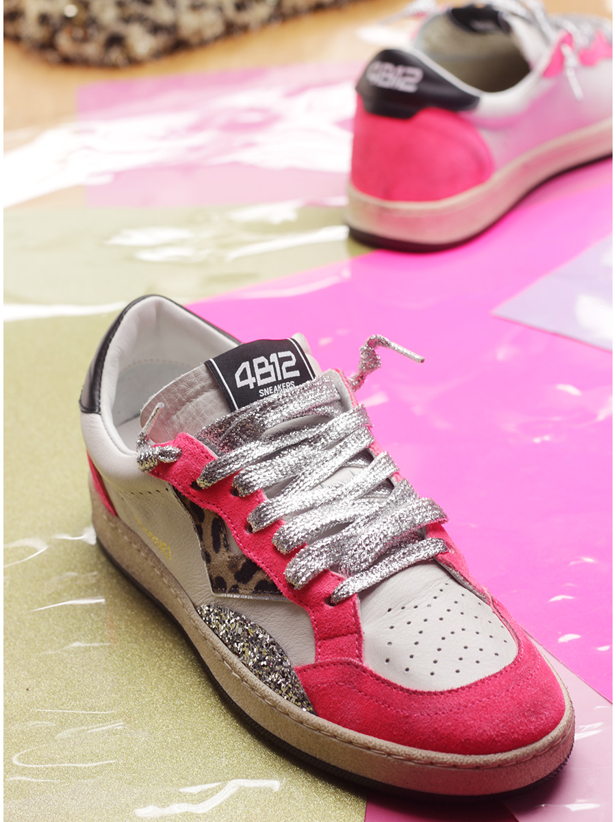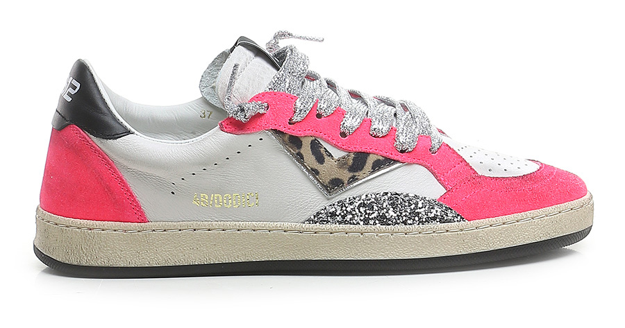 Sneaker in pelle effetto vintage, camoscio effetto vintage con inserto in glitter. Suola in gomma. Altezza tacco 30mm, plattform 20mm con battuta di 10mm.