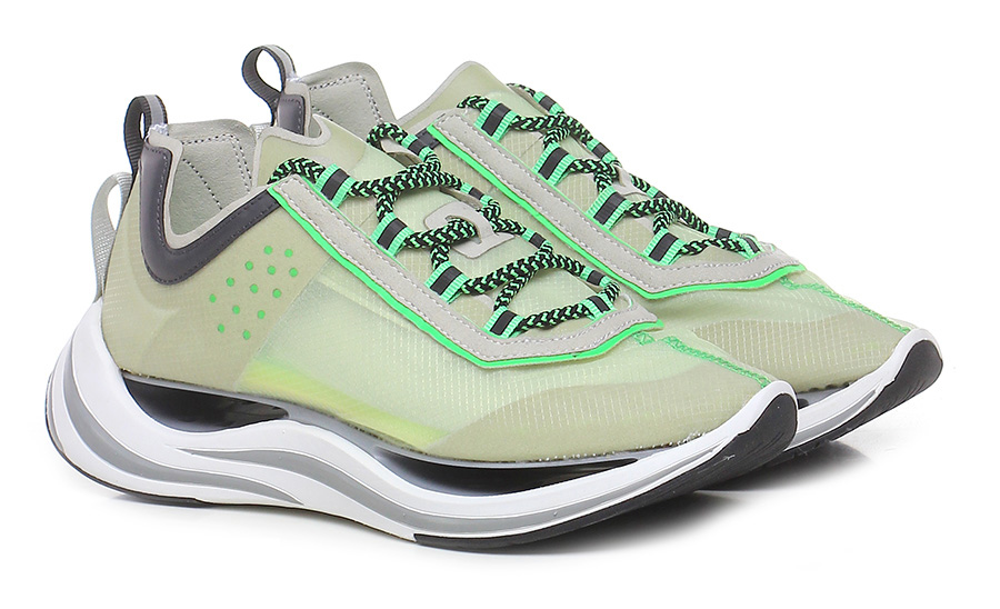 Sneaker in tessuto tecnico elasticizzato ad alta resistenza con inserti in pelle e lycra, suola eva. Altezza suola: 40, platform 30 con battuta 10.