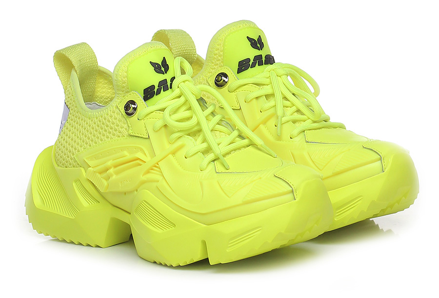 Sneaker in eco pelle e tessuto a retina, suola in gomma over size. Altezza suola: 55, platform 35 con battuta 20.