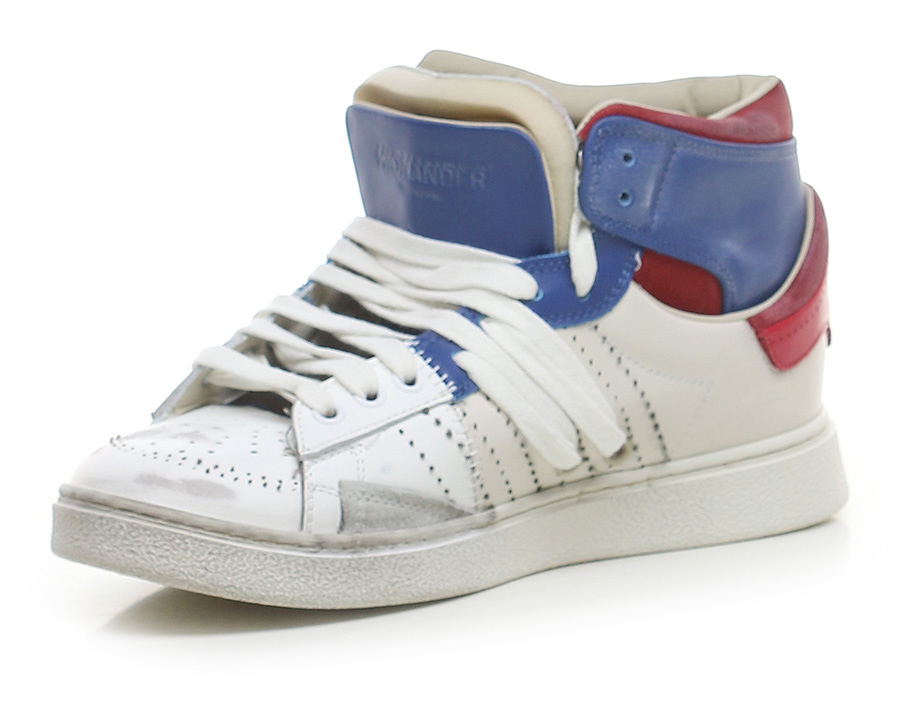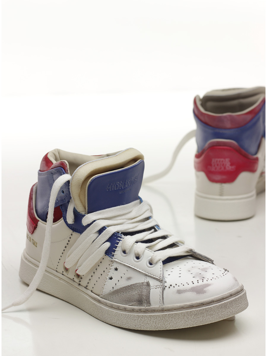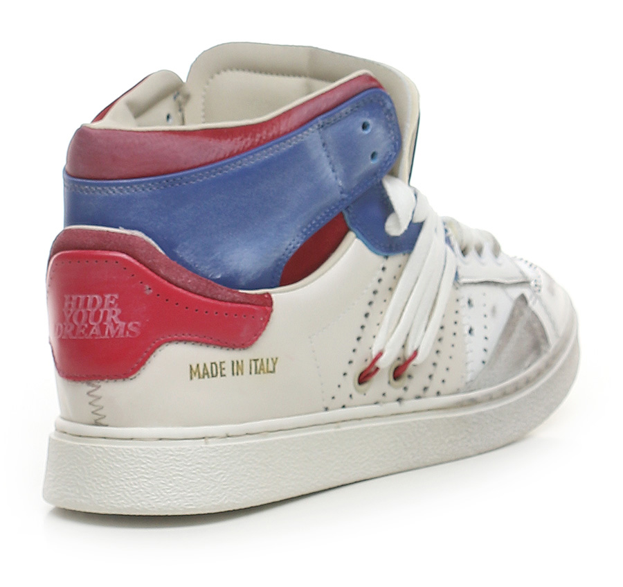 Sneaker in pelle effetto vintage e camoscio effetto vintage con suola in gomma. Altezza tacco 25mm, platform 20mm con battuta 5mm.
