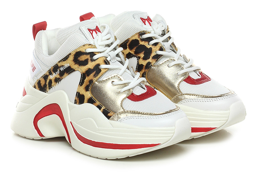 Sneaker in pelle, cavallino, eco pelle e tessuto con suola in gomma. Tacco 75, platform 50 con battuta 25.