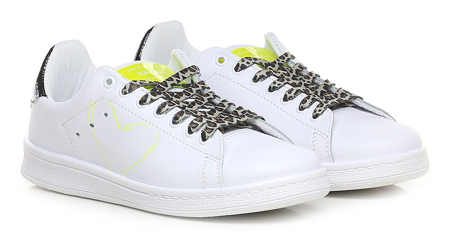 Sneaker in pelle con talloncino in vernice stampa cocco e suola in gomma. Altezza tacco 25mm, platform 20mm con battuta 5mm.
