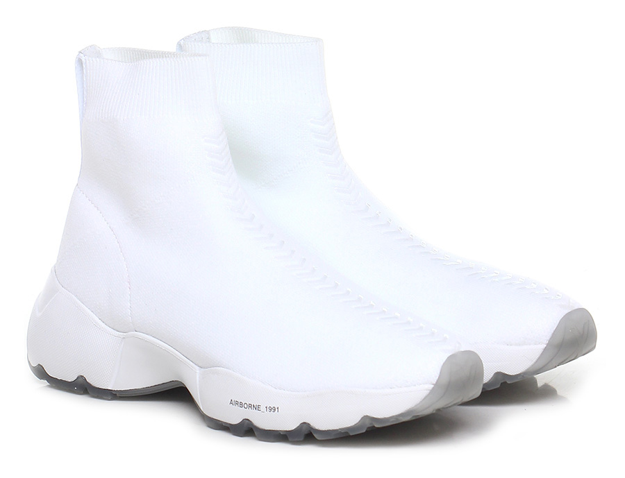 Sneaker in tessuto con gambale elasticizzato e suola in gomma extra light. Tacco 50, platform 25 con battuta 25.
