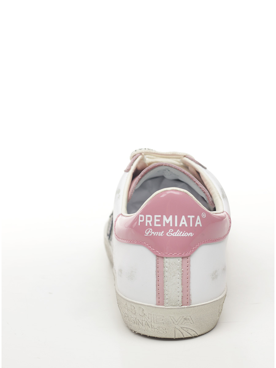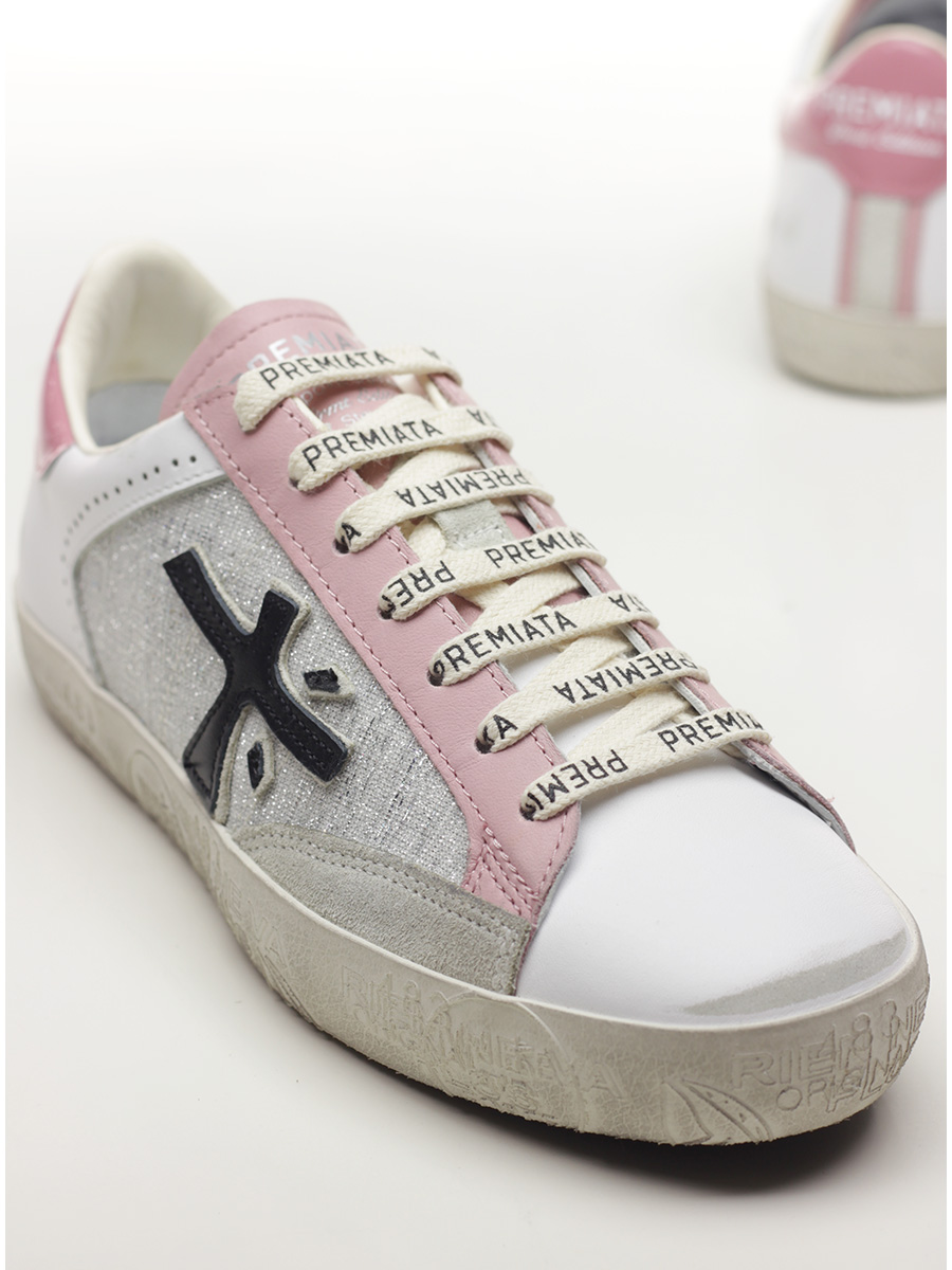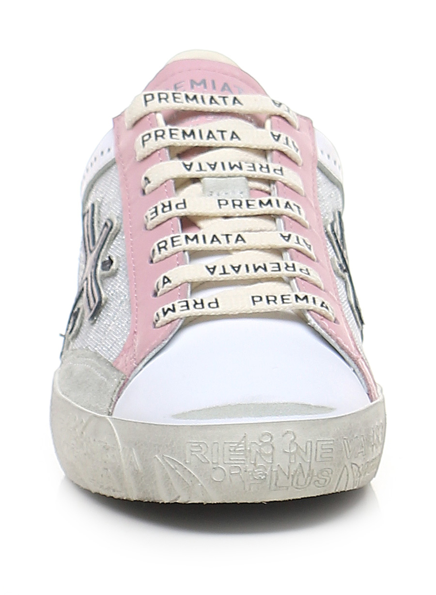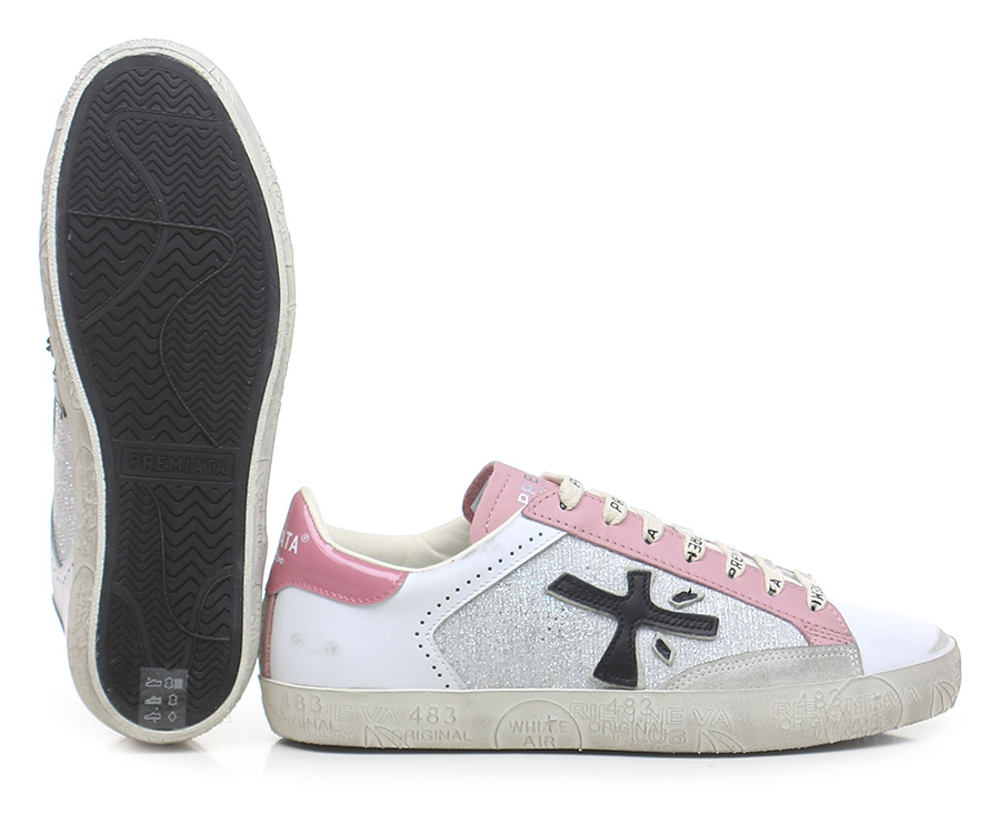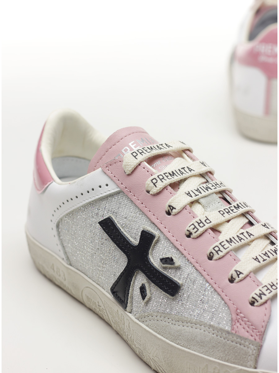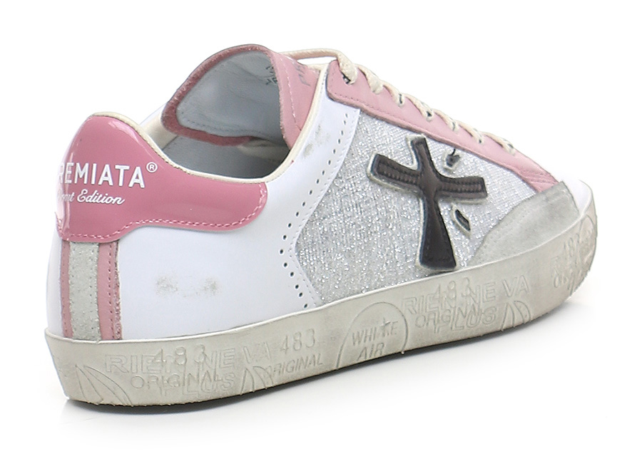 Sneaker in pelle effetto vintage e tessuto glitterato con inserti in camoscio e talloncino in vernice. Suola in gomma effetto vintage: altezza suola 20mm.