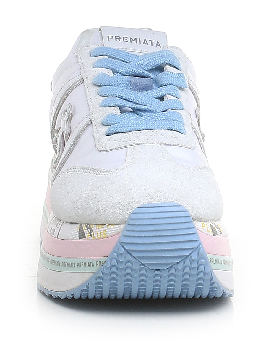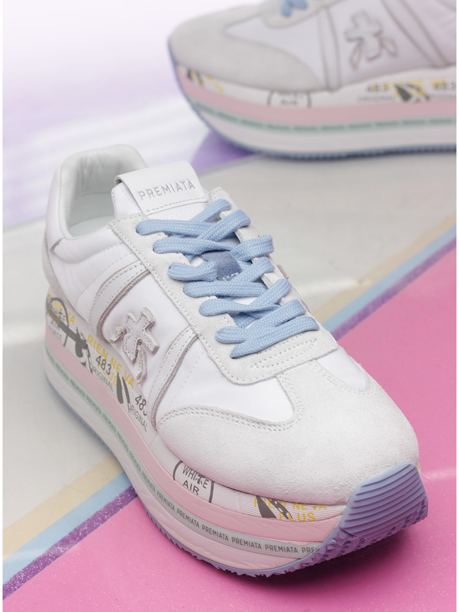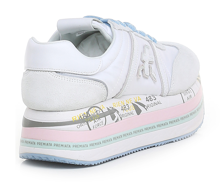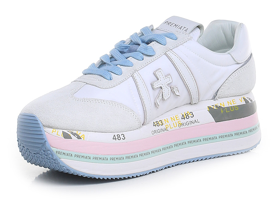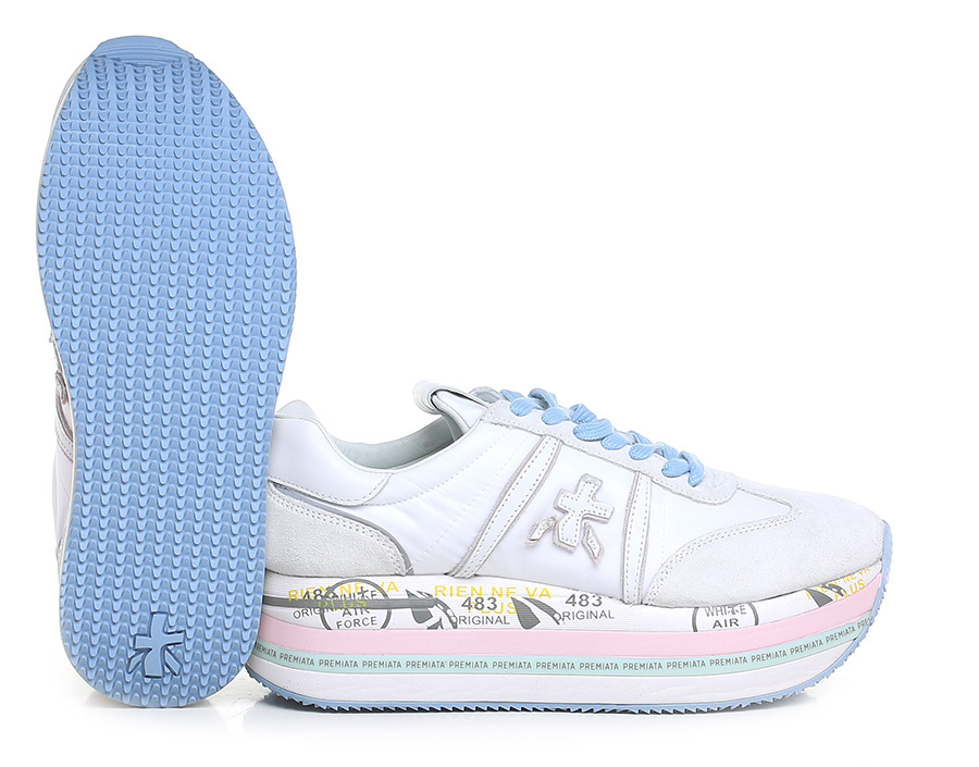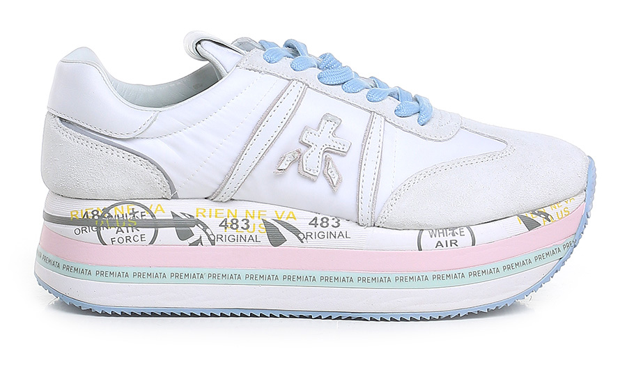 Premiata, marchio sinonimo di avanguardia e espressività, nasce con un solo obiettivo: essere il compagno di viaggio ideale di chi detesta i cliché e crede nella libertà. Le calzature Premiata, simbolo di creatività estrema, sono realizzate artigianalmente modellando la materia partendo dal bianco, che dona grande libertà di plasmare le forme. La scarpa Premiata, realizzata con grande abilità manuale e minuziosa cura dei dettagli, è caratterizzata da eleganza, comodità e da un design inconfondibile.