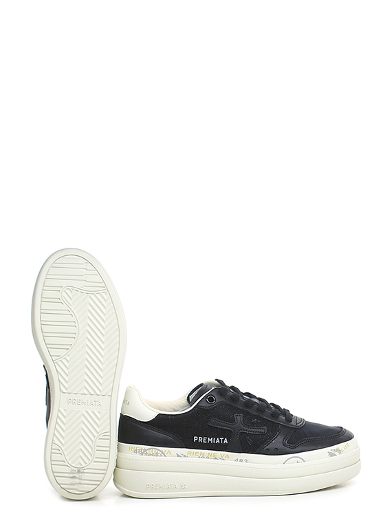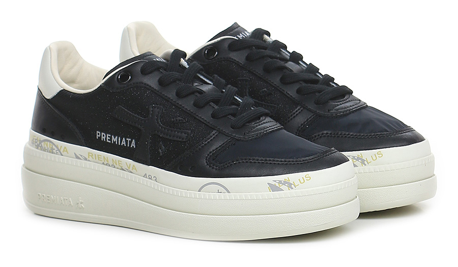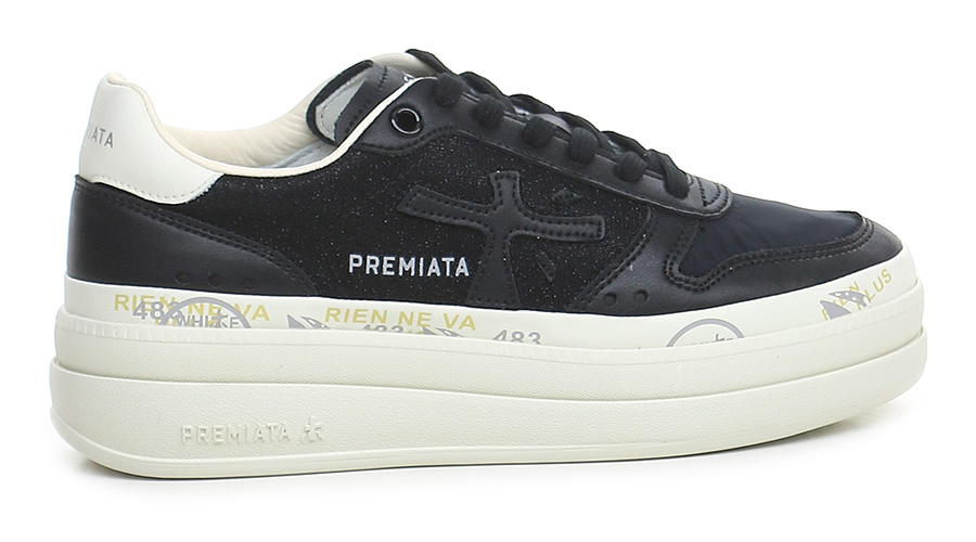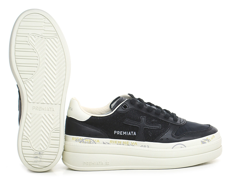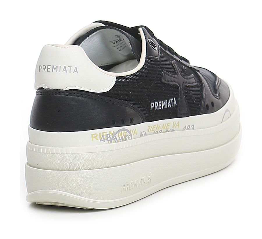 Premiata, marchio sinonimo di avanguardia e espressività, nasce con un solo obiettivo: essere il compagno di viaggio ideale di chi detesta i cliché e crede nella libertà. Le calzature Premiata, simbolo di creatività estrema, sono realizzate artigianalmente modellando la materia partendo dal bianco, che dona grande libertà di plasmare le forme. La scarpa Premiata, realizzata con grande abilità manuale e minuziosa cura dei dettagli, è caratterizzata da eleganza, comodità e da un design inconfondibile.
