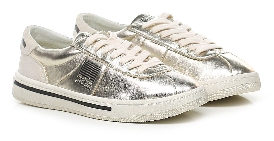 Sneaker in pelle laminata e crosta con suola in gomma effetto vintage. Altezza tacco 30mm, platform 25mm con battuta 5mm.