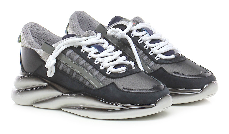 Sneaker in tessuto, nabuk e pelle, suola in gomma scolpita. Altezza suola: 50, platform 30 con battuta 20.