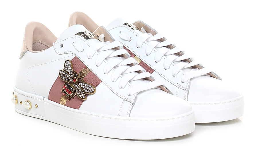 Sneaker in pelle e tessuto elasticizzato con inserti su lato esterno e suola in gomma. Tacco 25.