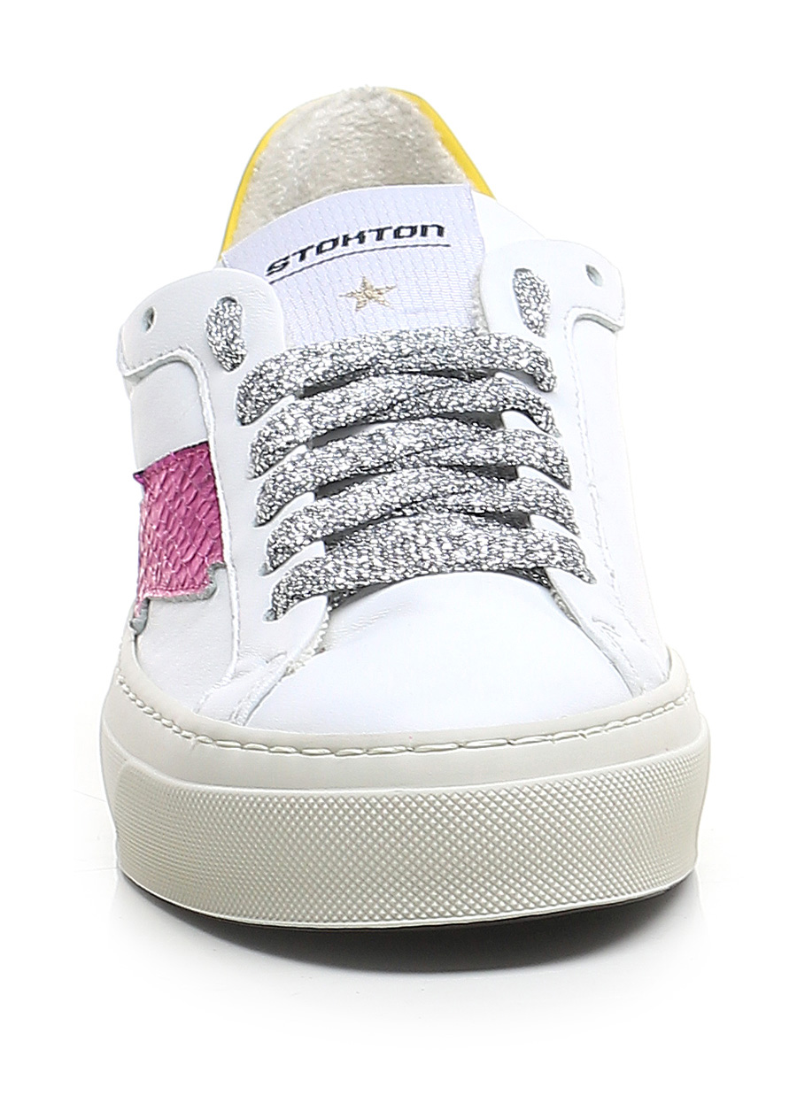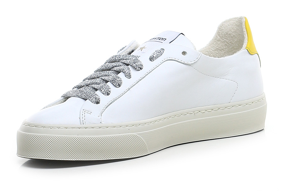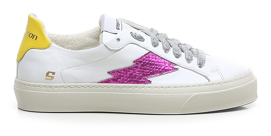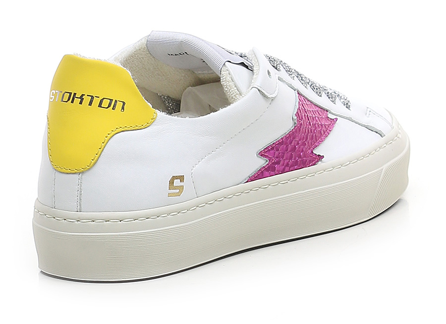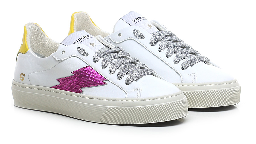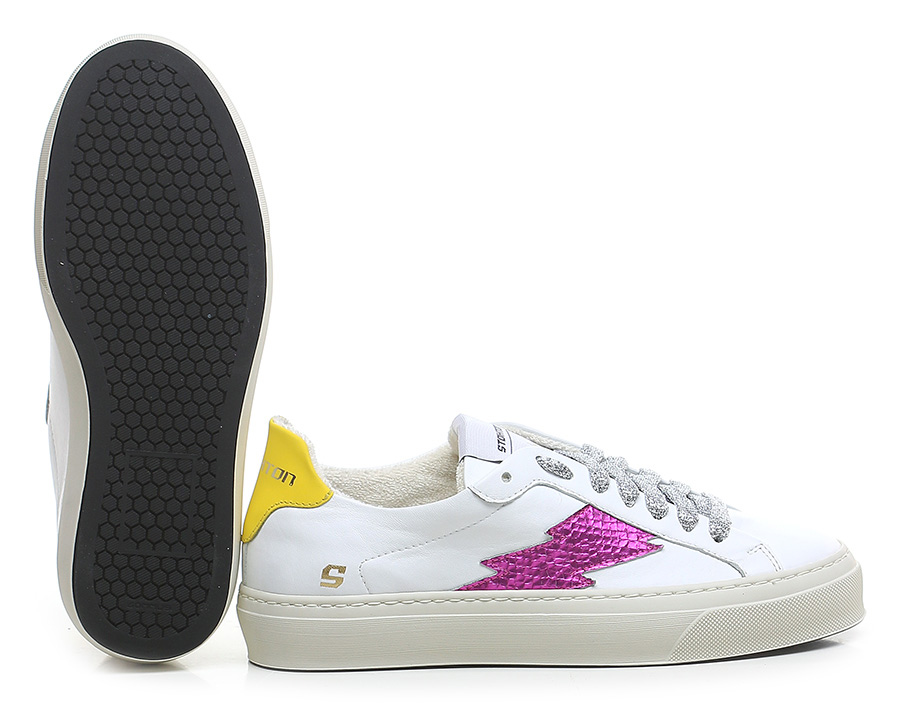 Sneaker in pelle con inserto in pelle laminata stampa pitone. Suola in gomma. Altezza suola 30mm.