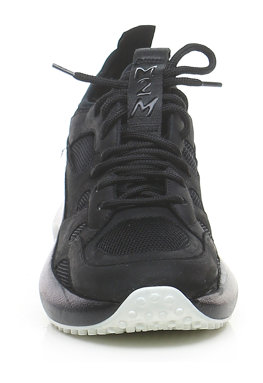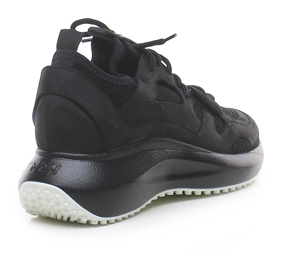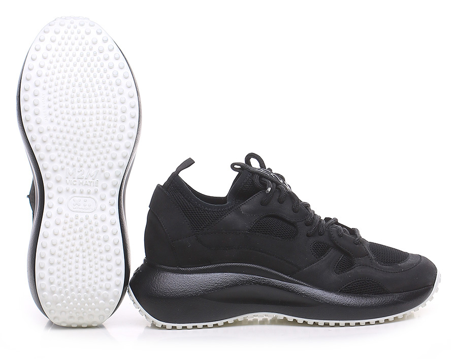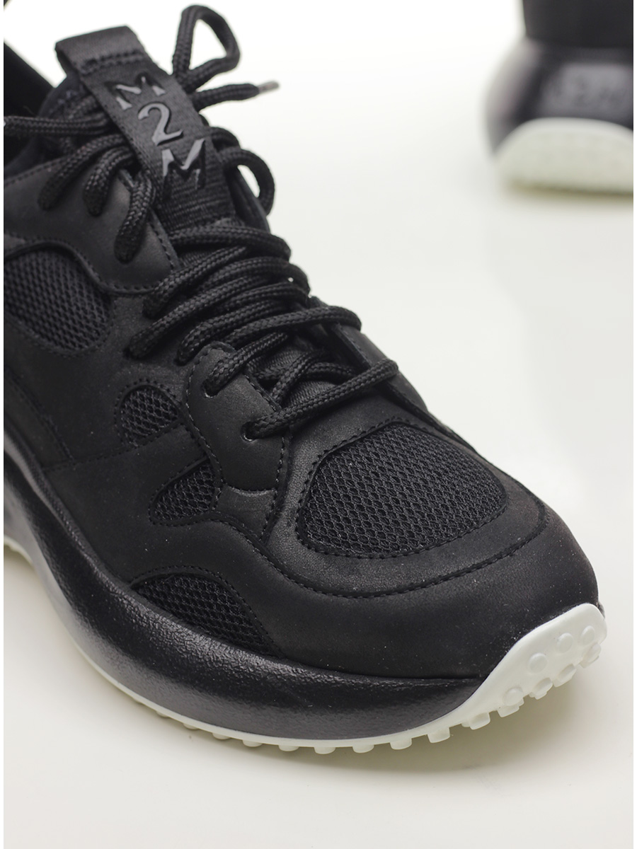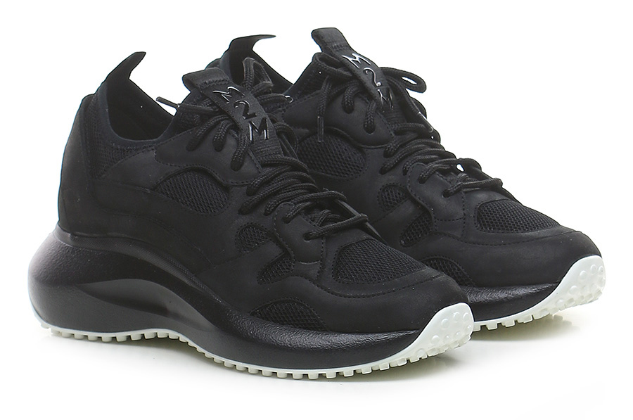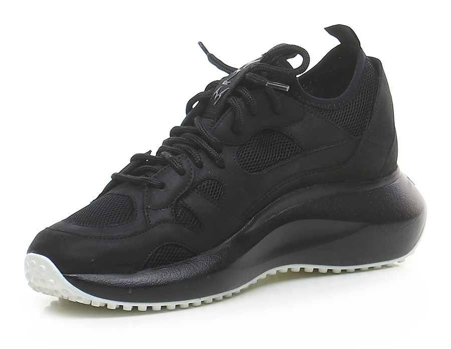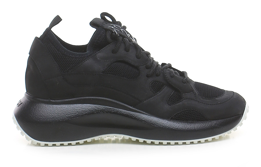 Sneaker in pelle e tessuto con suola in gomma. Altezza tacco 55mm, platform 30mm con battuta 25mm.