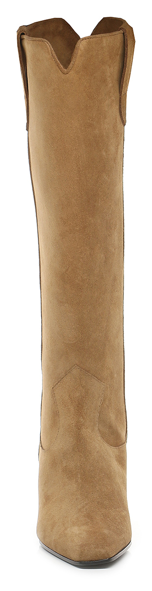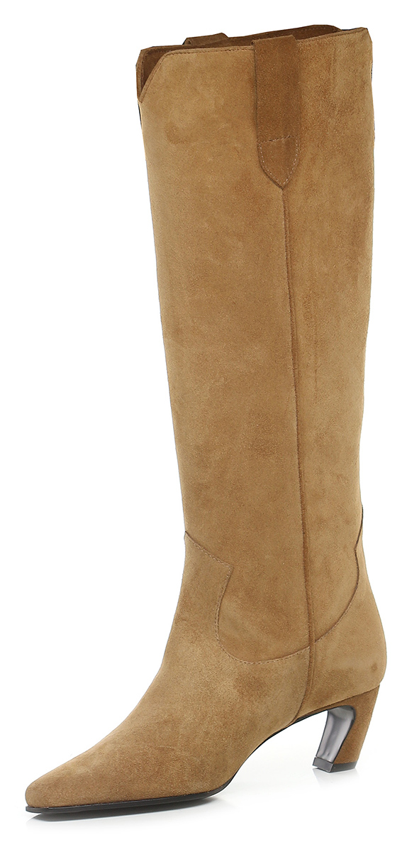 Stivale in camoscio con suola in cuoio e gomma. Altezza tacco 55mm. Altezza gambale 40cm. Tacco foderato in camoscio.