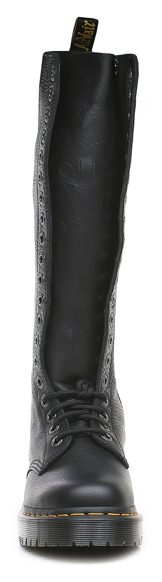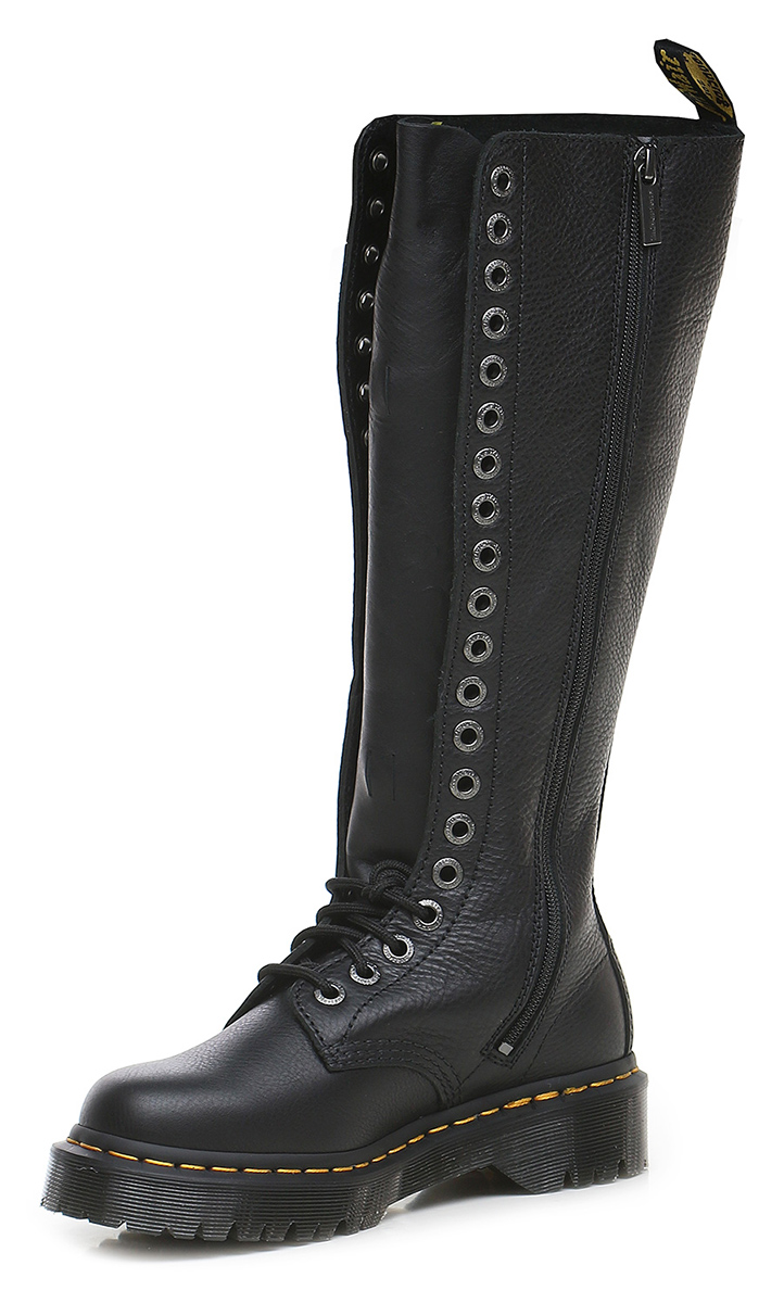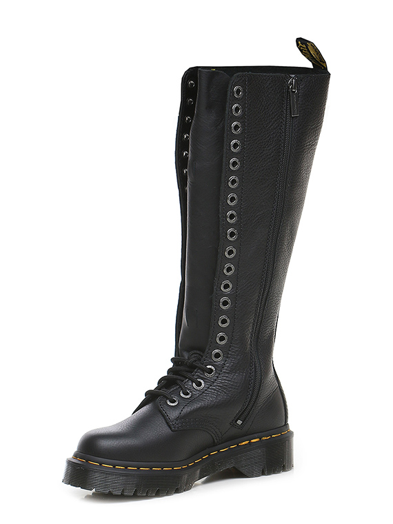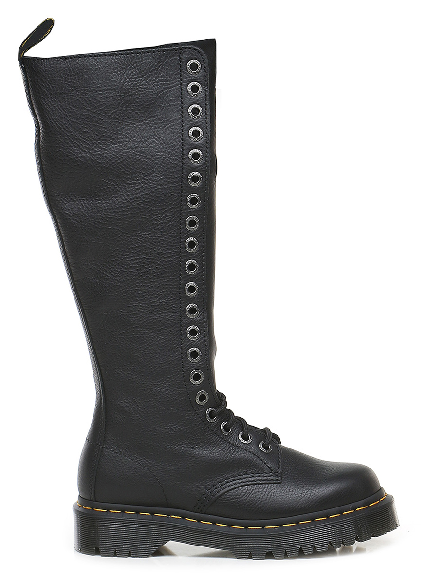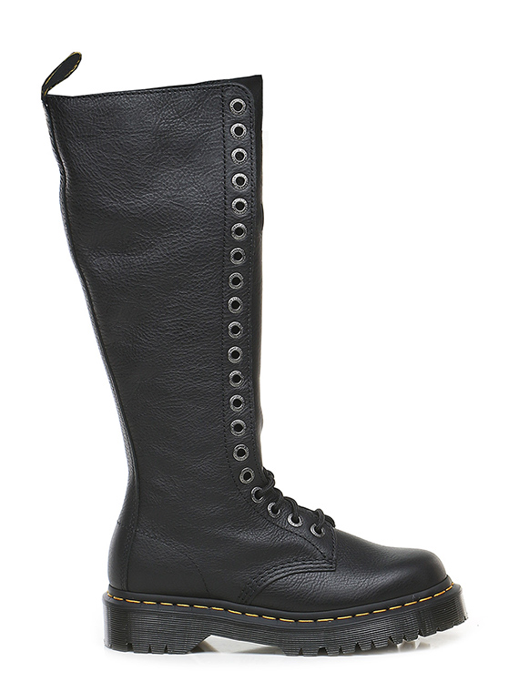 Stivale in pelle martellata con zip lateral. Suola in gomma effetto carrarmato. Altezza tacco 40mm, platform 25mm con battuta 15mm.