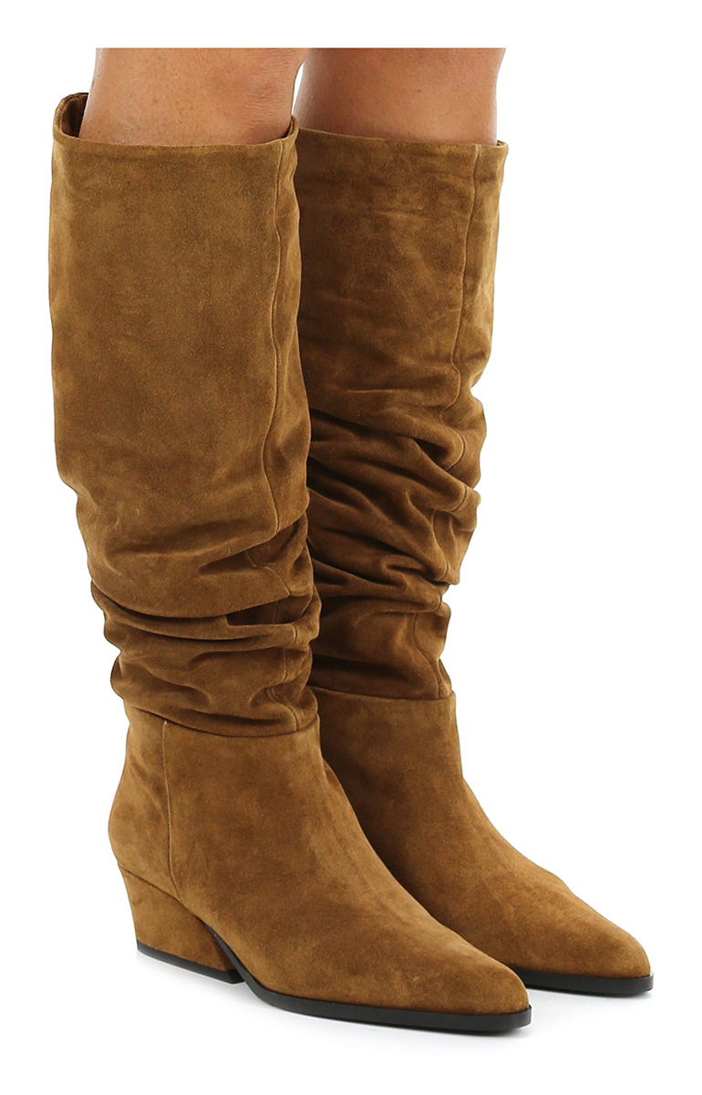 Stivale in camoscio con suola in gomma. Tacco 45. Altezza gambale 400.