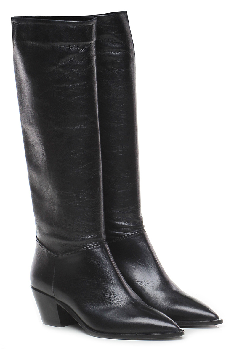 Stivale in pelle effetto vintage, suola in gomma. Tacco 55. Altezza gambale 400.