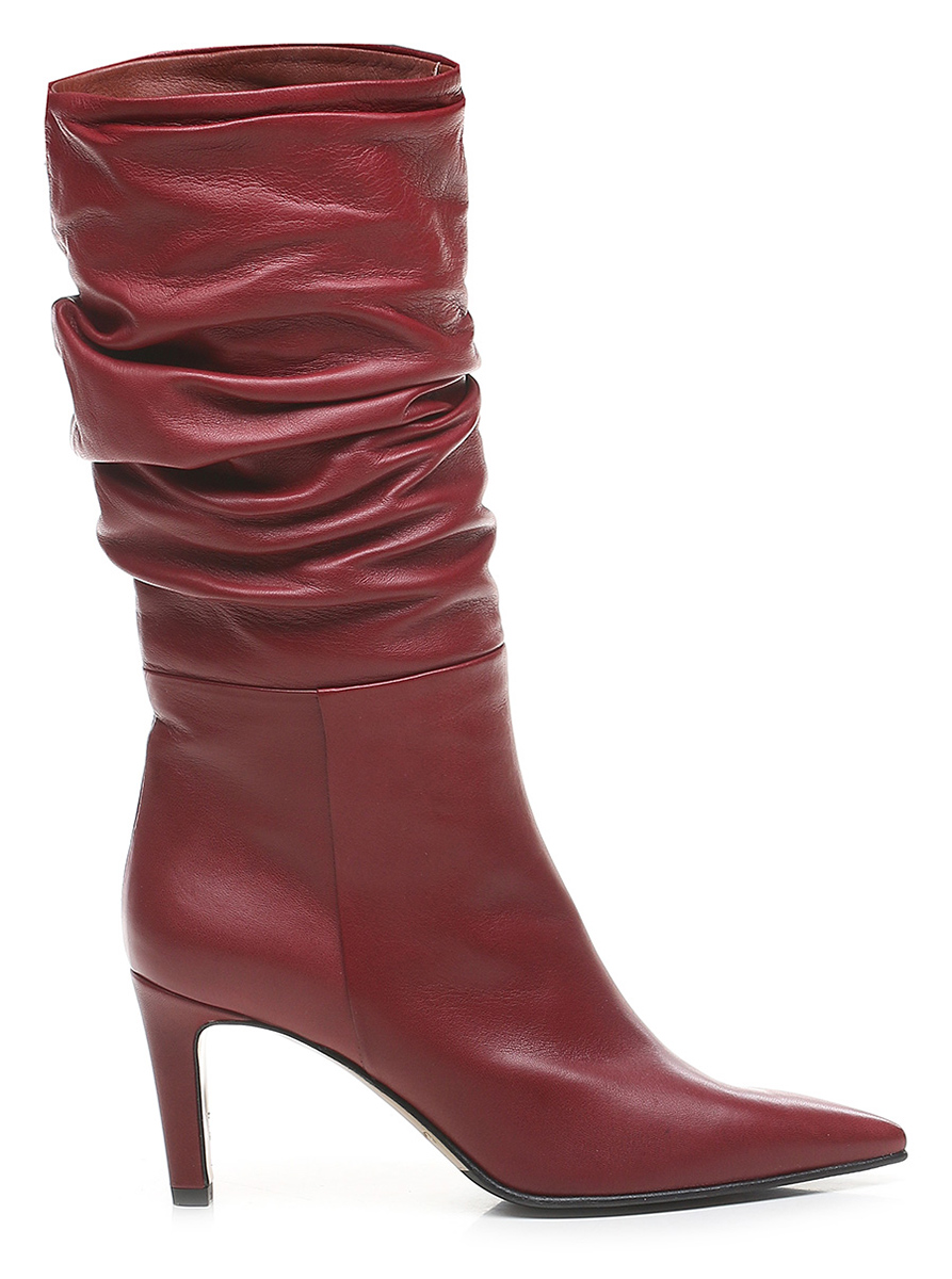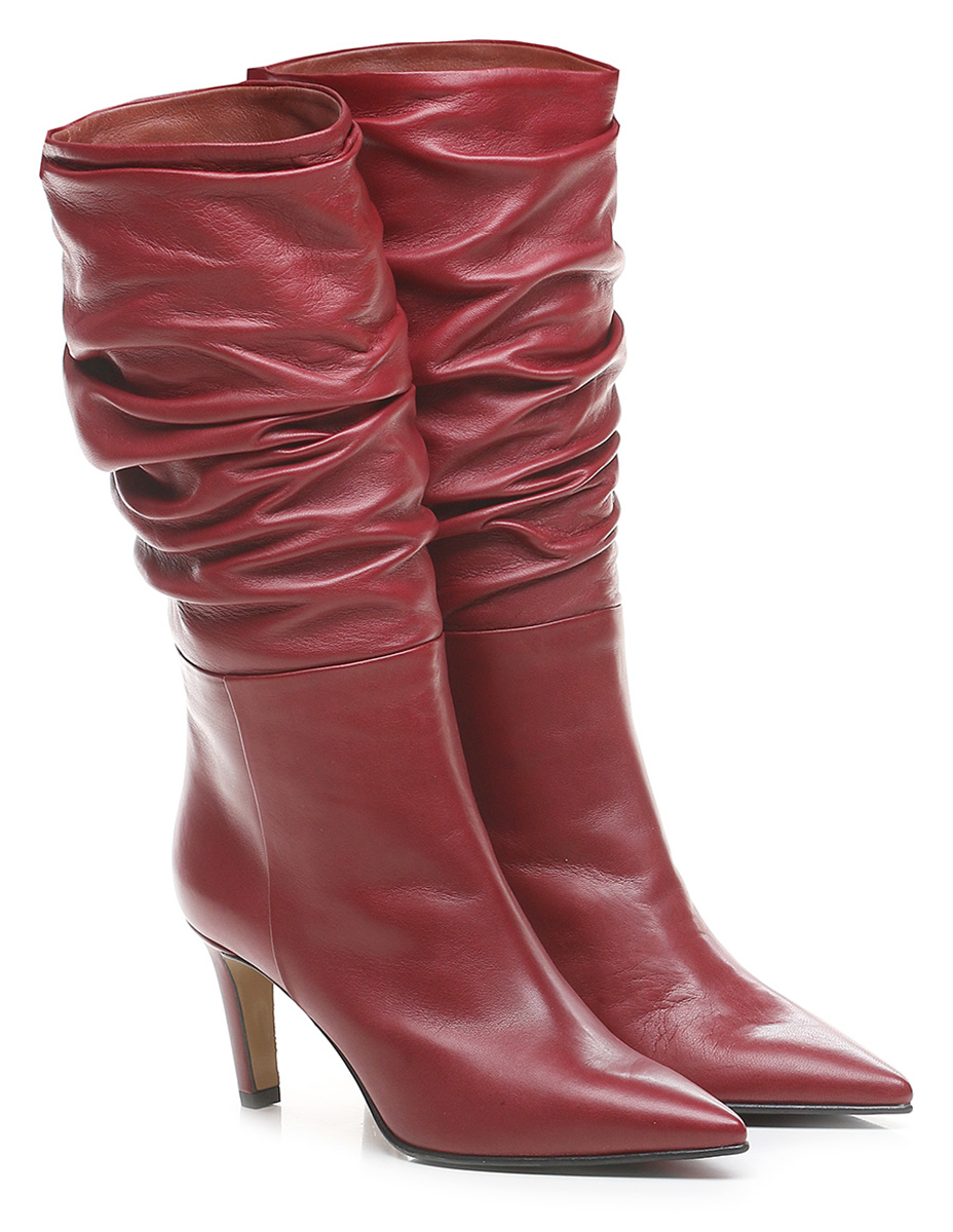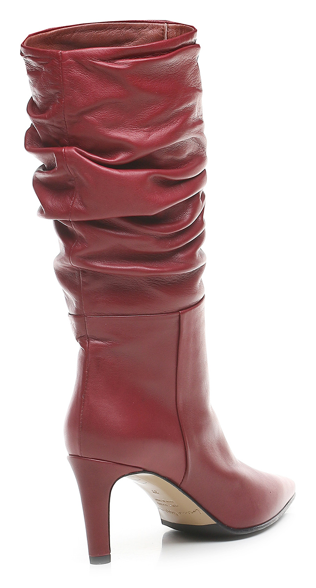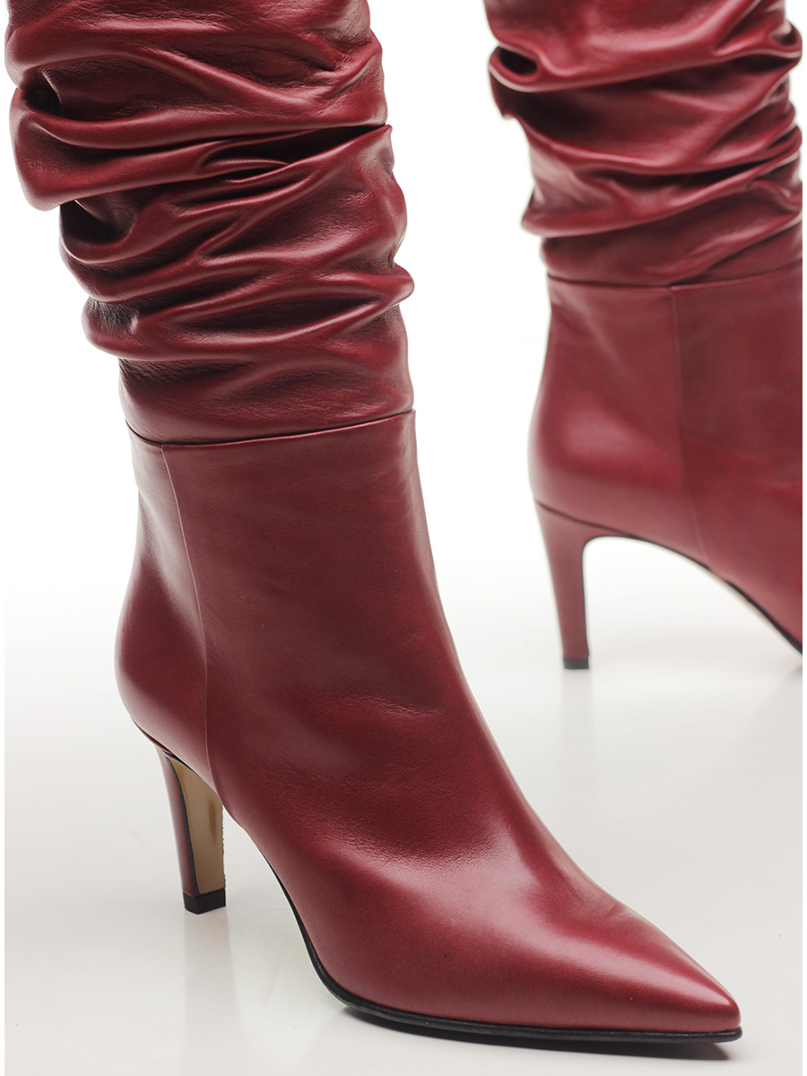 Stivale in pelle con suola in cuoio e gomma. Altezza tacco 75mm. Altezza gambale 28cm.