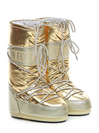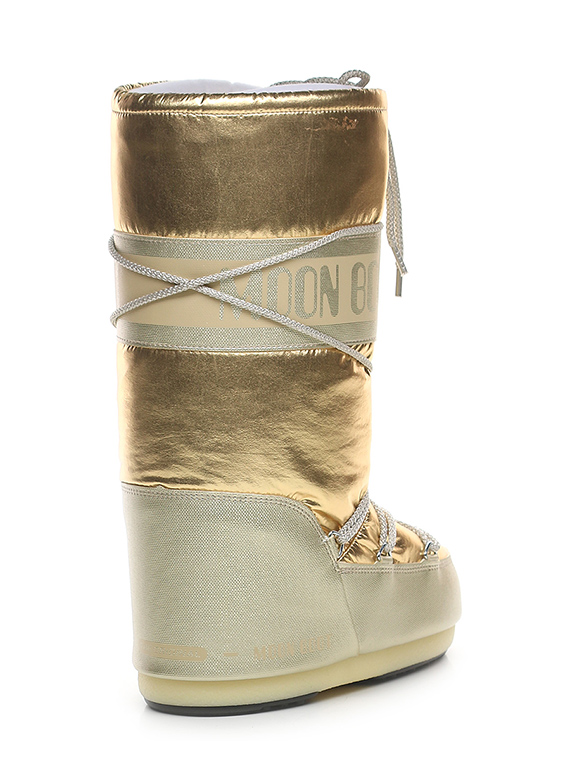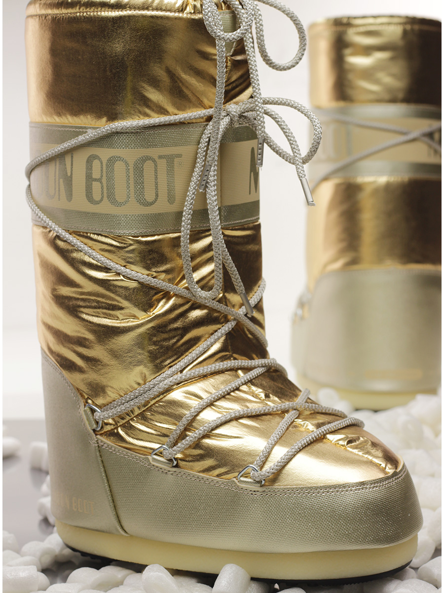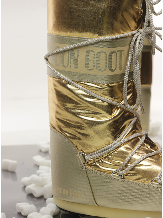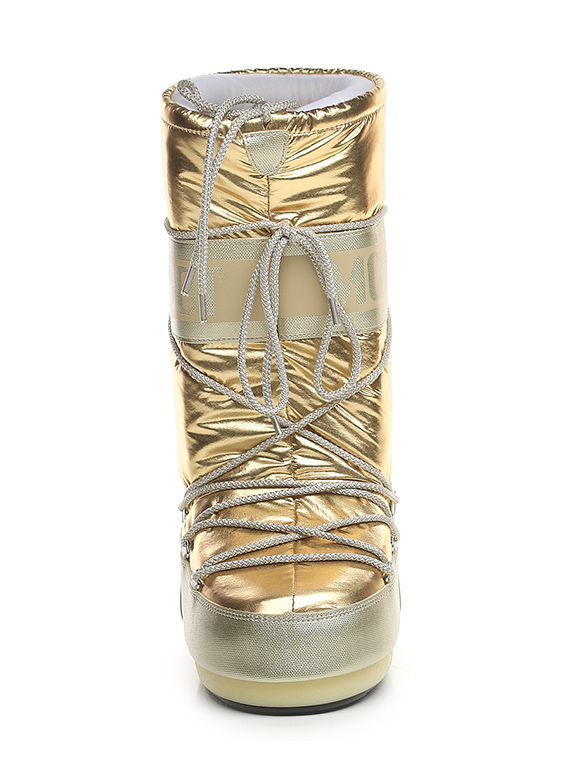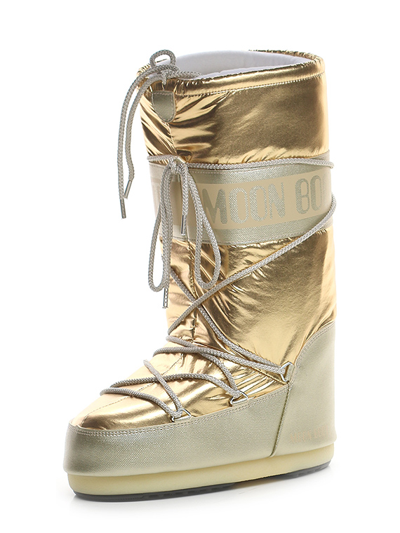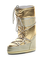 Stivale in similpelle effetto laminato e tessuto laminato con suola in gomma. Altezza suola 20mm. Zeppa interna 30mm. Altezza gambale 32cm.