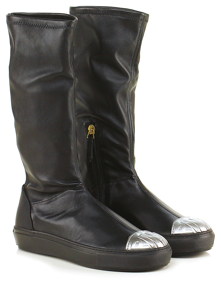 Stivale in eco pelle ed eco pelle stretch con suola in gomma. Tacco 30, platform 30 con battuta 10. Altezza gambale 310.