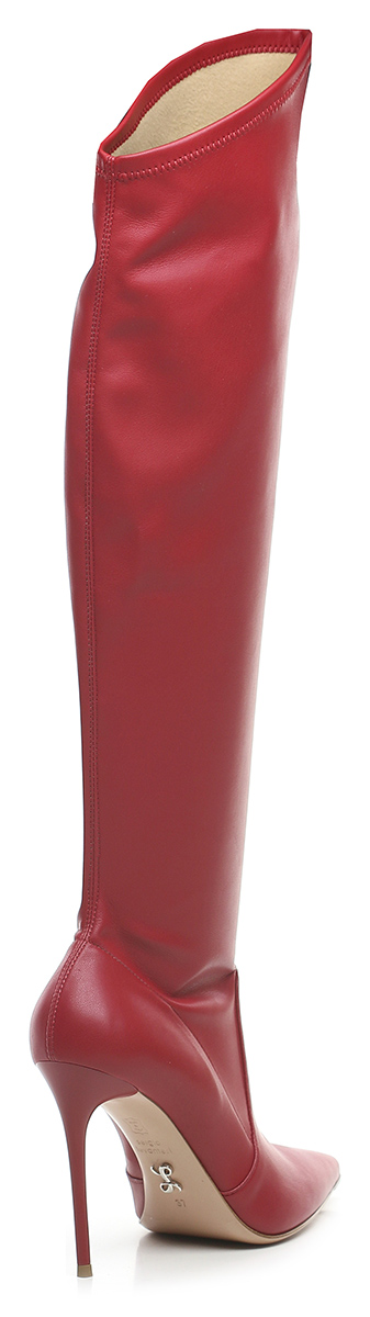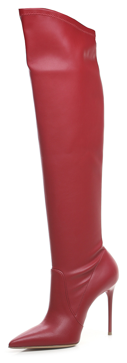 Stivale in similpelle e similpelle stretch con suola in cuoio e gomma. Altezza tacco 105mm. Tacco in pvc effetto opaco. Altezza gambale 42cm.