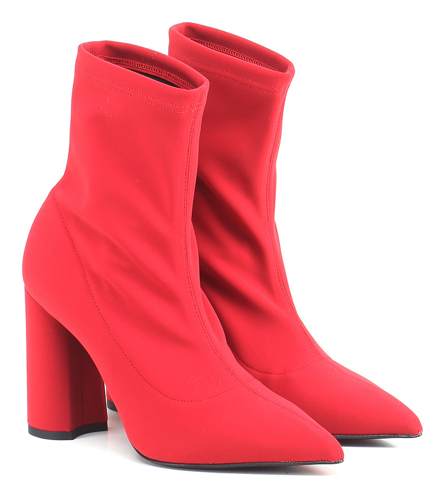 Tronchetto in tessuto e tessuto elasticizzato con suola in cuoio. Tacco 100.