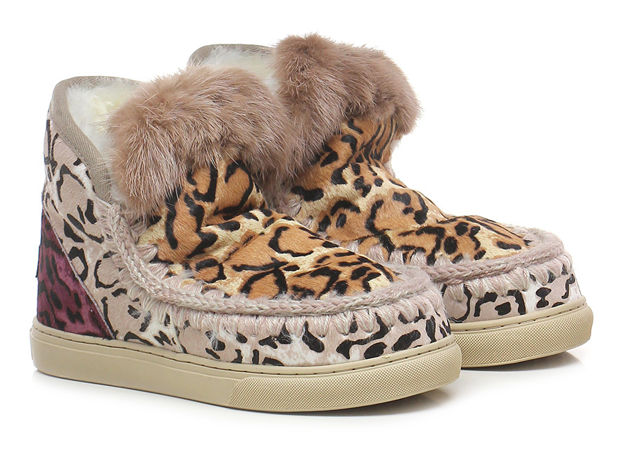 Tronchetto in pelle effetto cavallino e visone, suola in gomma. Tacco 25, platform 25. Zeppa 30.