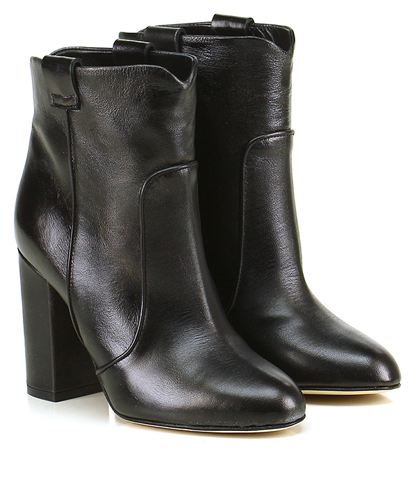 Tronchetto in pelle laminata vintage con suola in cuoio, tacco 95. Collezione Primavera Estate 2017