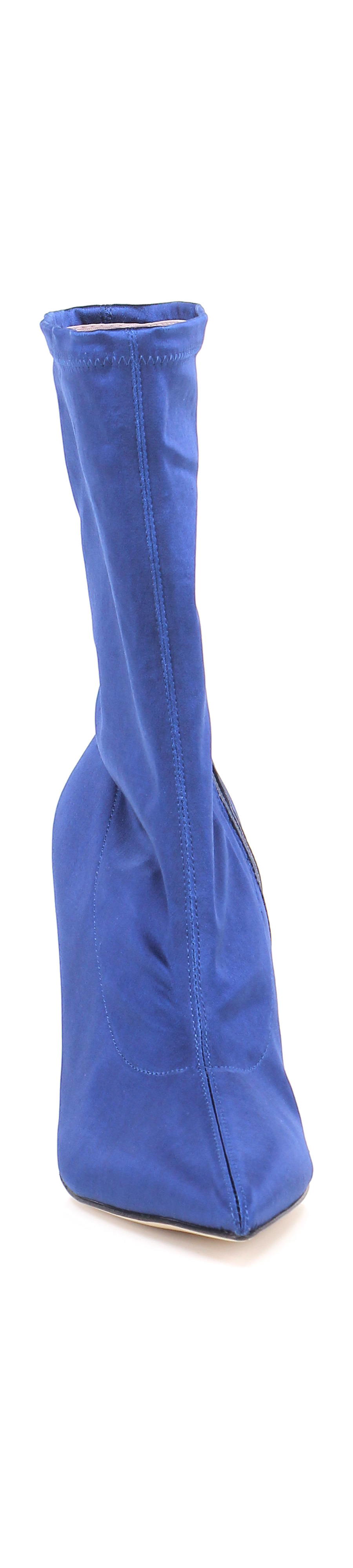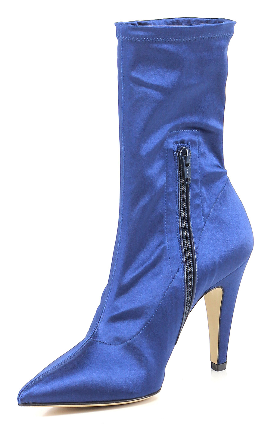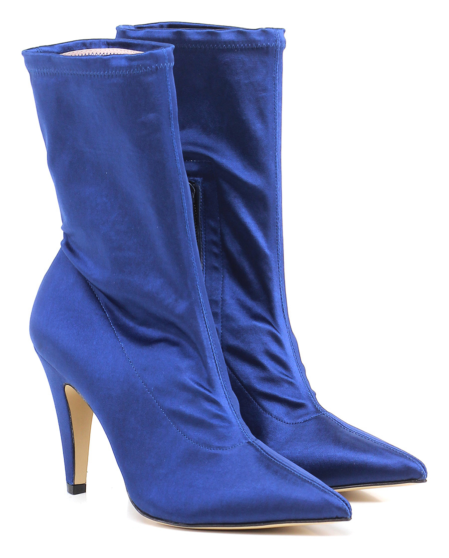 Tronchetto in tessuto raso con zip su lato interno e gambale stretch. Suola in cuoio, tacco 100.