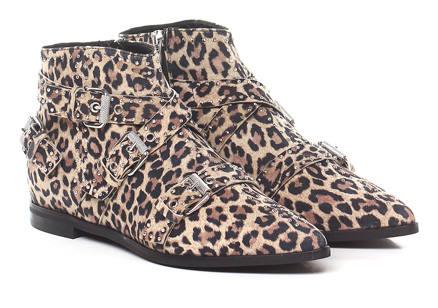 Tronchetto in camoscio con multi cinturino su tomaia e zip su lato interno. Suola in gomma, tacco 25.