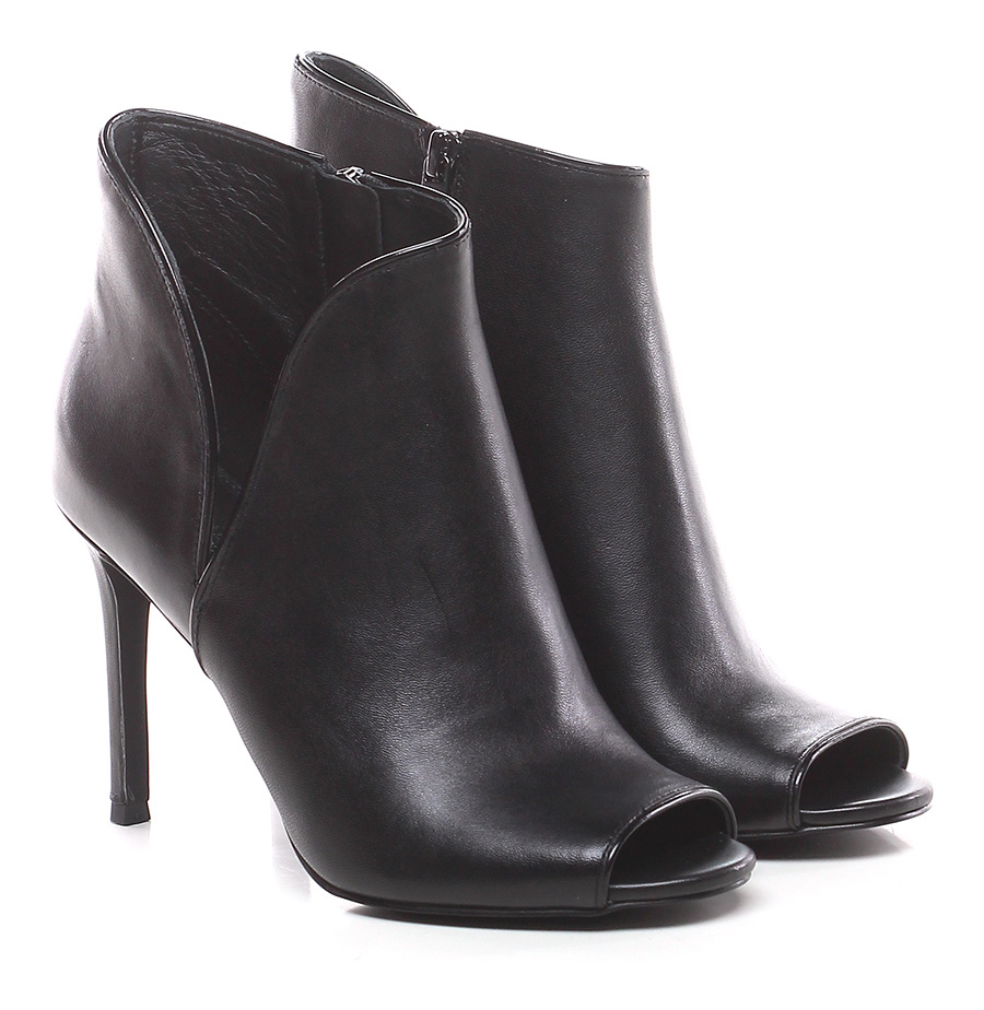 Tronchetto open toe in pelle con zip su lato interno e suola in gomma. Tacco 95.