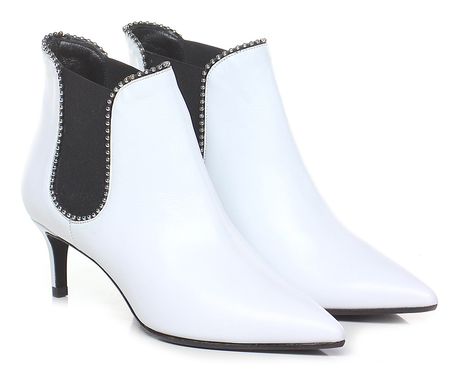 Tronchetto in pelle vintage con inserto elasticizzato su ambo i lati e borchie su tomaia. Suola in cuoio e gomma, tacco 60.