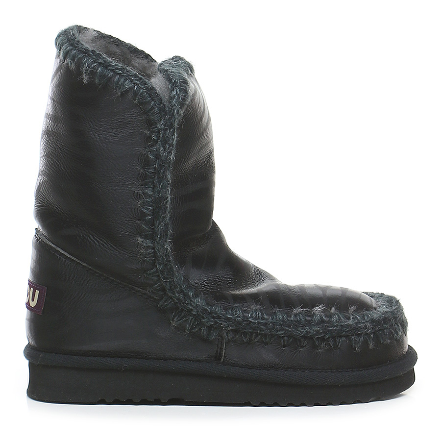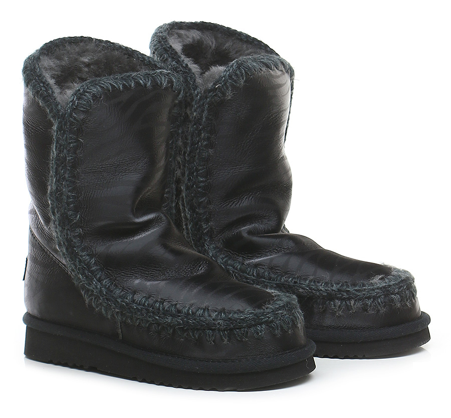 Tronchetto in pelle stampa zebra, foderato in montone. Suola in gomma: altezza tacco 30mm, platform 20mm con battuta di 10mm.
