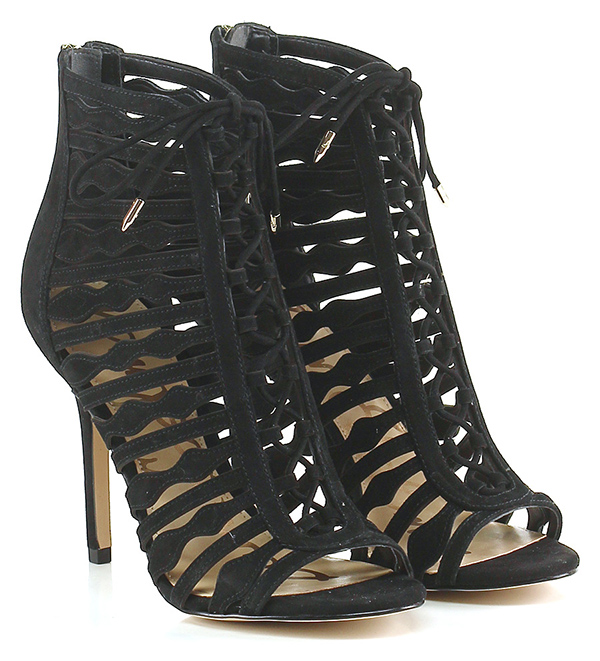 Tronchetto in camoscio con zip su retro ed allacciatura frontale. Suola in gomma, tacco 105.