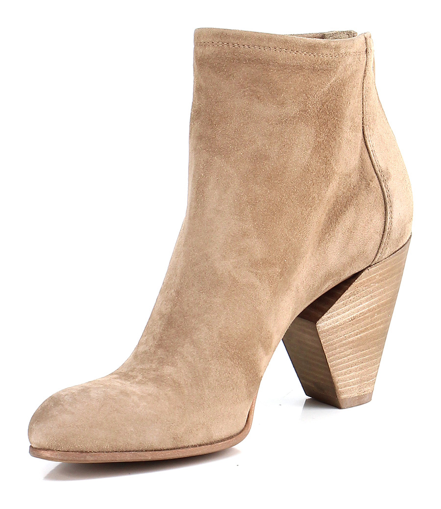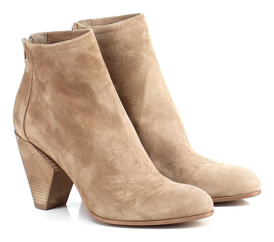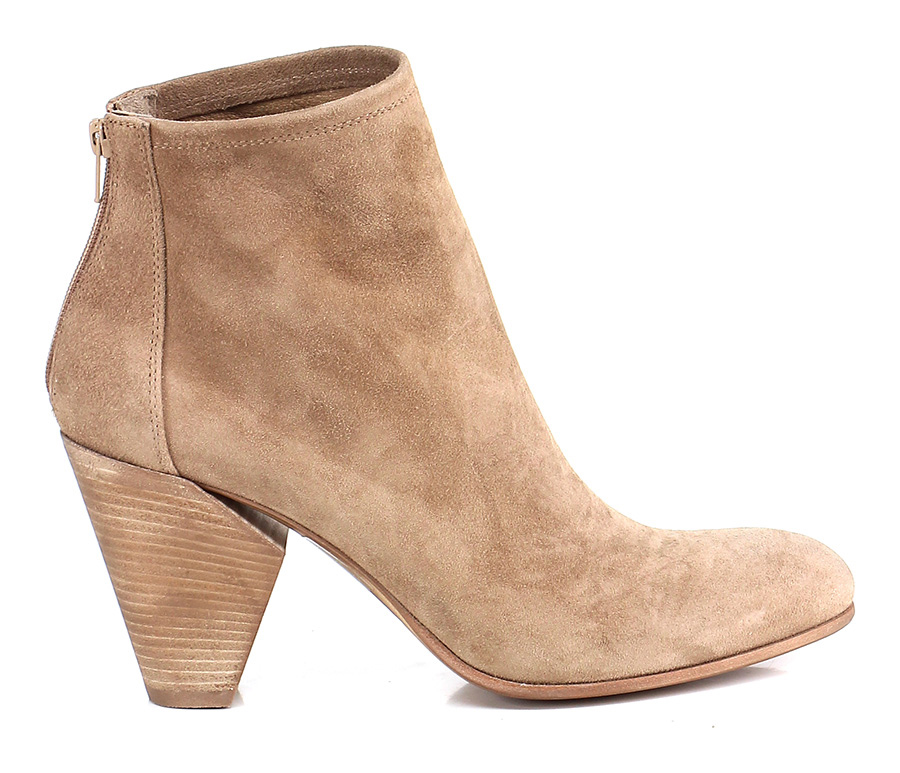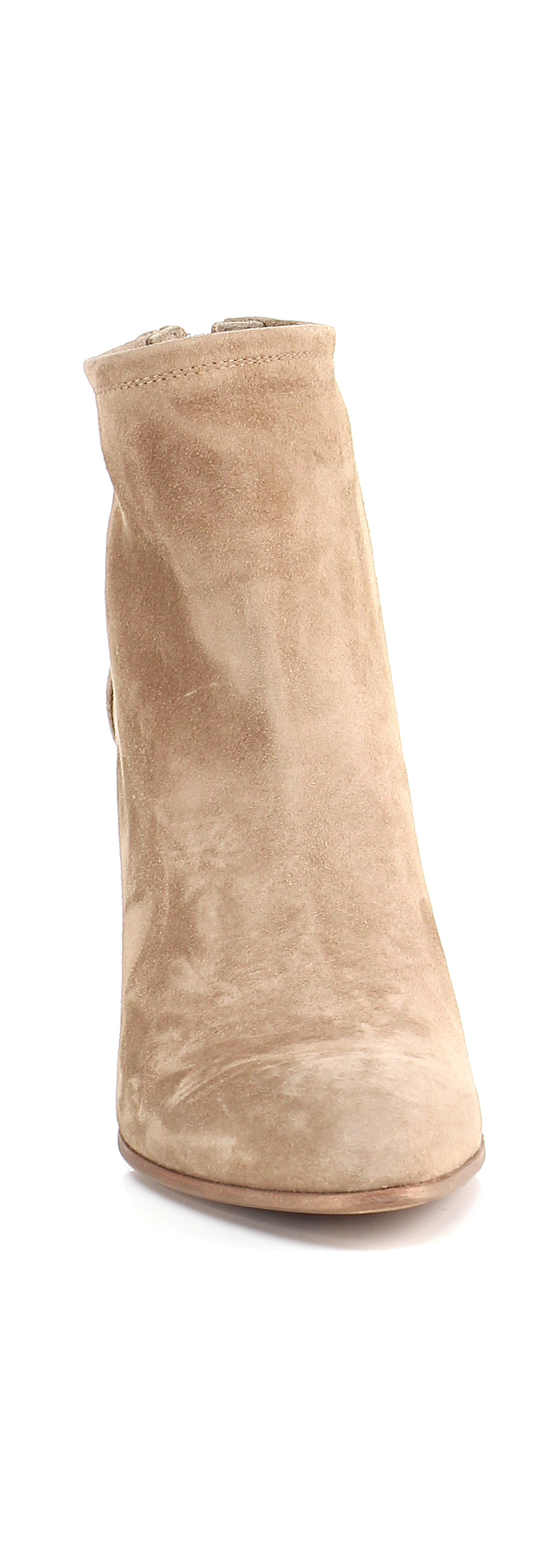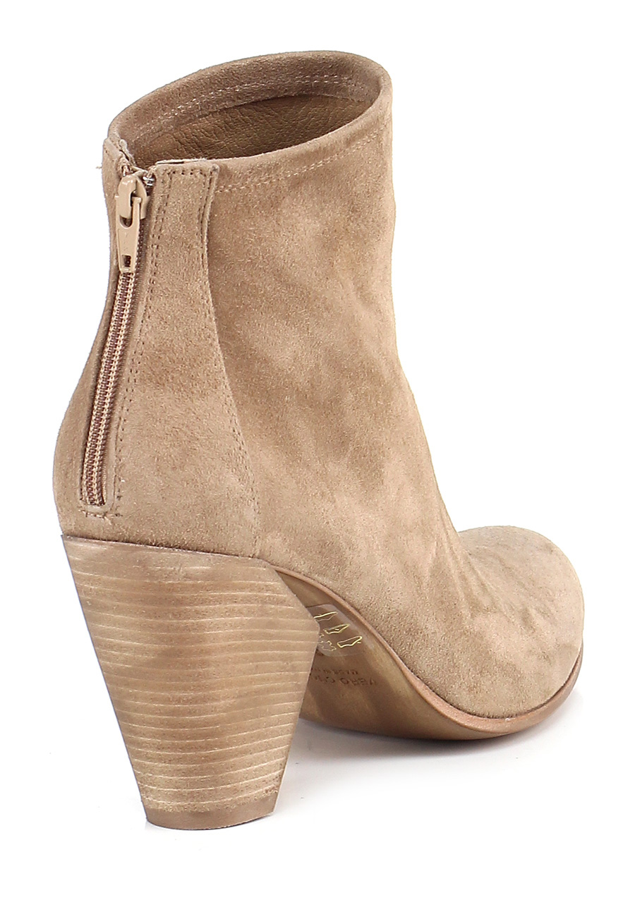 Tronchetto in camoscio con zip su retro e suola in cuoio, tacco 85.