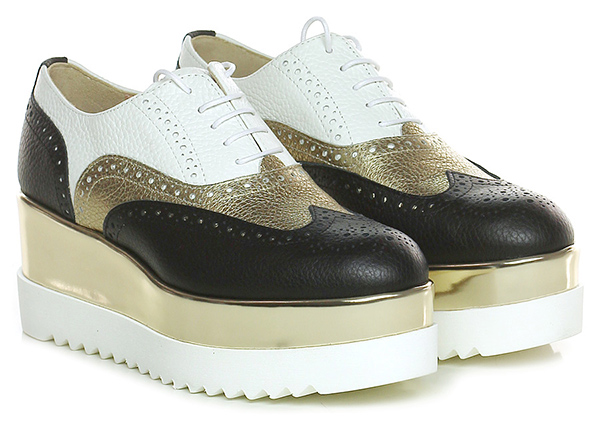 Zeppa in pelle effetto martellato e pelle laminata martellata con lavorazione stile inglese e suola in gomma light. Tacco 70, platform 50 con battuta 20.