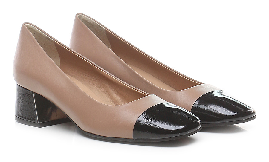 Scarpa in pelle e naplak con suola in gomma. Altezza tacco 45mm.